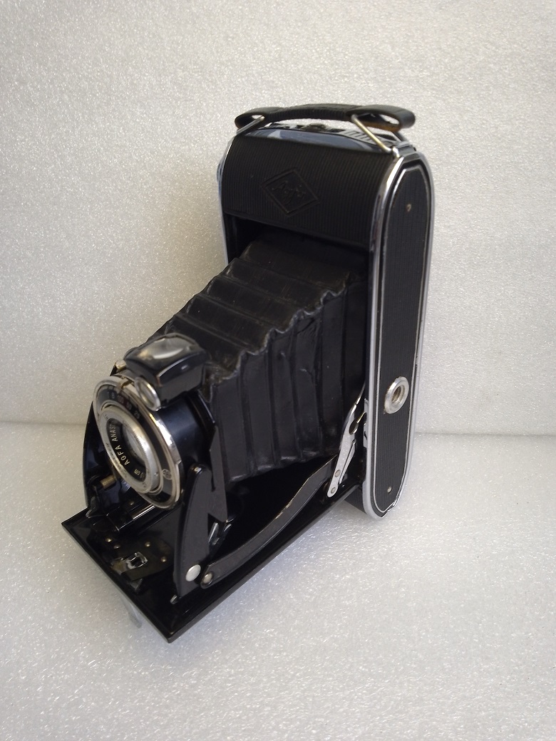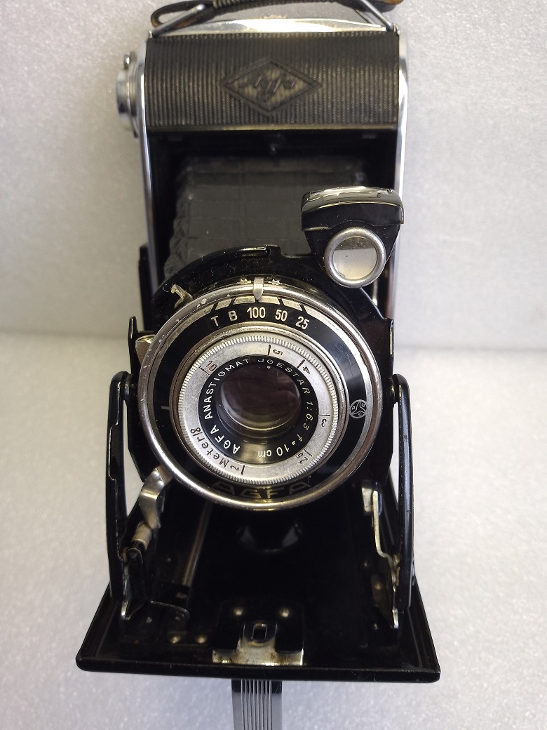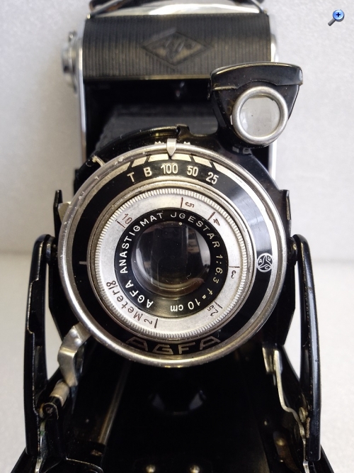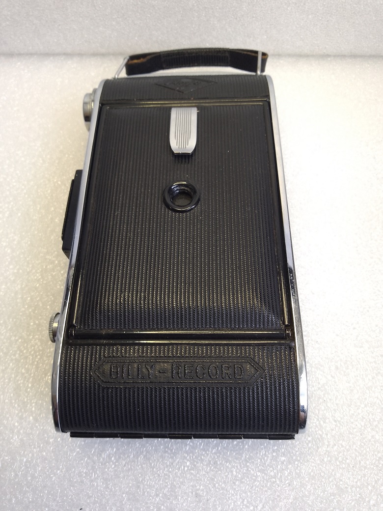 Hersteller: Agfa Kamerawerk München Modell: Agfa Billy Record 6,3 Typ: Balgen-/Klappkamera mit Rahmen/Sport- und Brillantsucher für 120er (B2) Rollfilm, Format 6x9, max. 8 Aufnahmen Baujahr:1939 Seriennummer: 6U 1811 Verschluß: Gauthier Vario, "B", "T", 1/25 bis 1/100 Sekunde Blenden: 6,3 - 32 Objektiv: Agfa Anastigmat Igestar 1:6,3/10 cm Fokusierung: manuell, 2 Meter bis unendlich Gewicht: ca. 580 Gramm Neupreis (1939): 35 RM (inkl. Drahtauslöser, Anleitung und Lehrbuch)