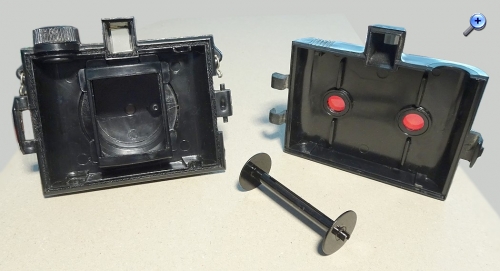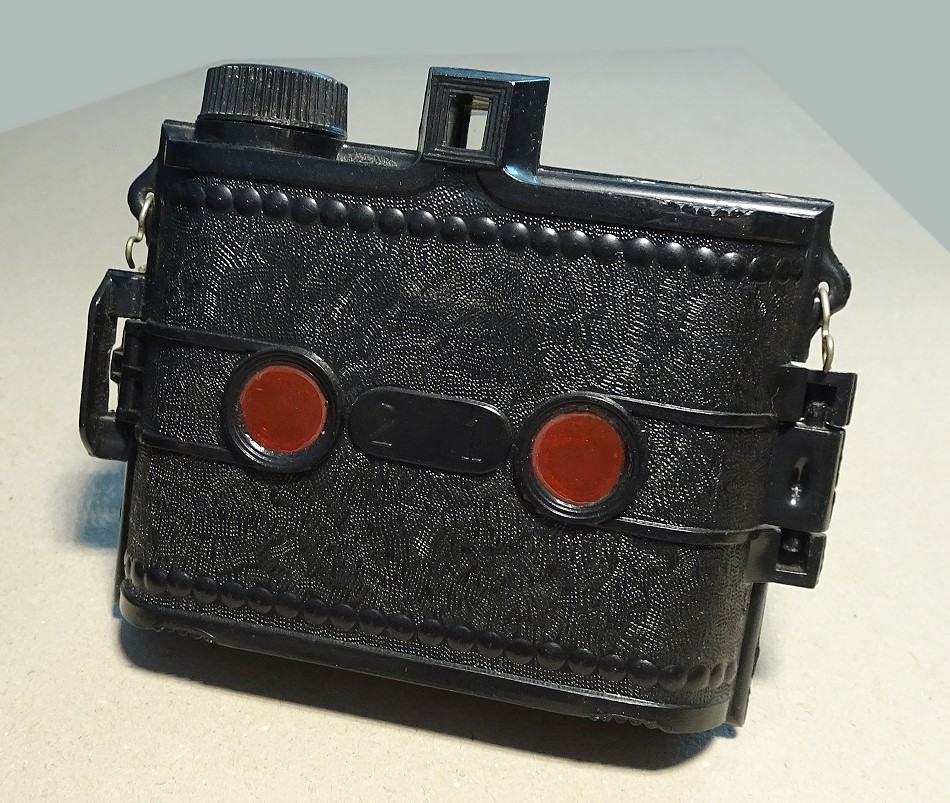 es handelt sich hier um ein Kinderspielzeug (welches aber funktionsfähig ist) einfachster Bauform. Hergestellt in Hong Kong. Die Kamera fotografiert in Normallage im Hochformat. Kamera wird über Sperrklinke geöffnet. Der Lieferkarton trägt auch die Aufschrift "The Wonder Camera".