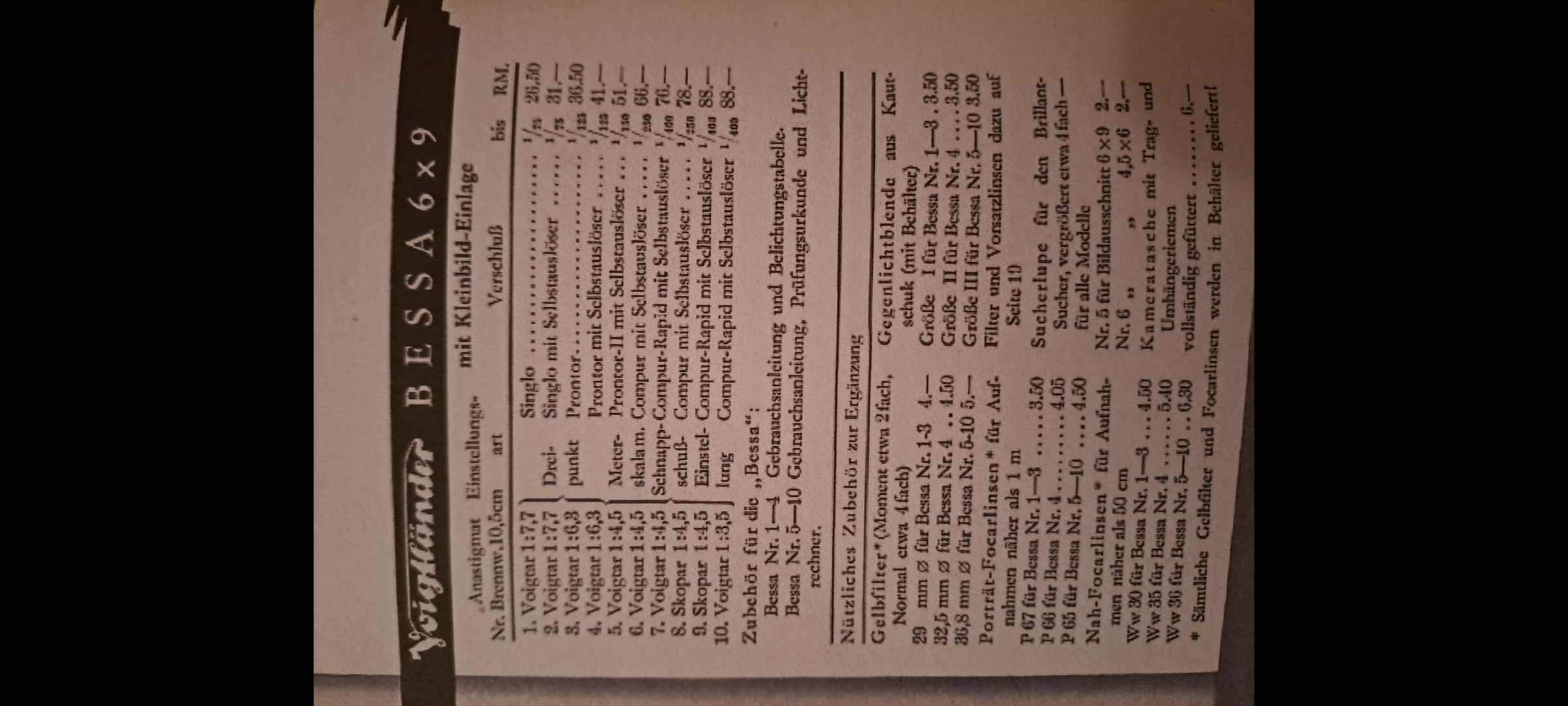 Hallo Axel, vielen Dank, das ist schon interessant, Modell 37. Ob es immer das gleiche Objektiv war und doch einfach nur eine Rundung? Im Voigtländer Katalog von 1938 sind exakt die gleichen Preise für die Bessa mit 10,5 cm.