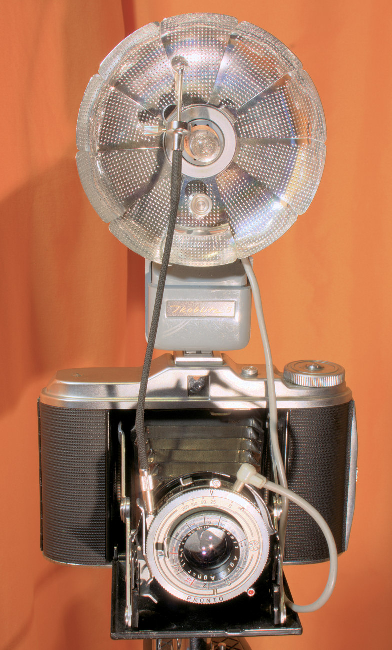 Blitz: Synchronbuchse, Blitzschuh, hier mit Ikoblitz 5