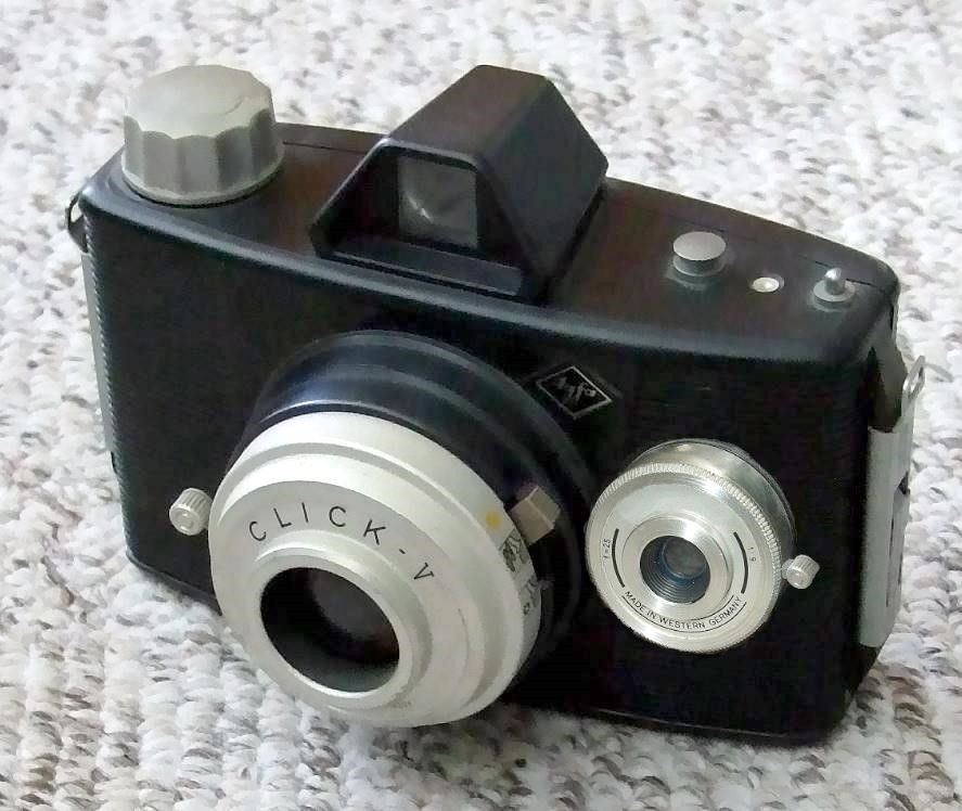 Hallo zusammen, die Agfa-Modelle Click I, II, III und IV waren als Einsteigerkameras recht erfolgreich. Mit dem Modell Click V unternahm Agfa den Versuch, eine sogenannte "Vater und Sohn" - Kamera am Markt zu platzieren.