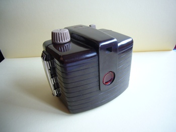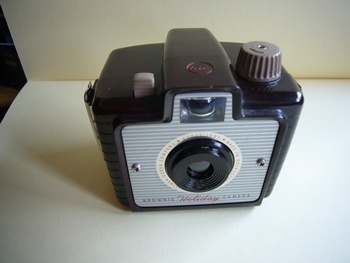 Es gibt noch ein Modell -Auf der Frontseite unter dem Auslöser eine rotes rundes Kodak Logo -das an der (von Vorne Betrachtet) linken Seite einen Blitzgeräteanschluss hat. we we we .brownie-camera.com/28.shtml