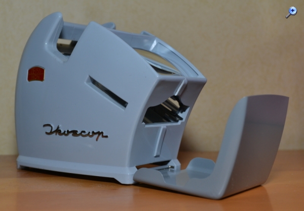 Das handliche Gerät funktioniert mit einer 15 Watt Birne und ist dank Originalschachtel wo es immer aufbewahrt wurde auch frei von häßlichen Kratzern und alterbedingten Ablagerungen. Die Ausleuchtung ist zum Betrachten bei Tageslicht sehr angenehm und so kann ich meine wenigen Dias auch ohne die Leinwand aufzubauen anschauen.