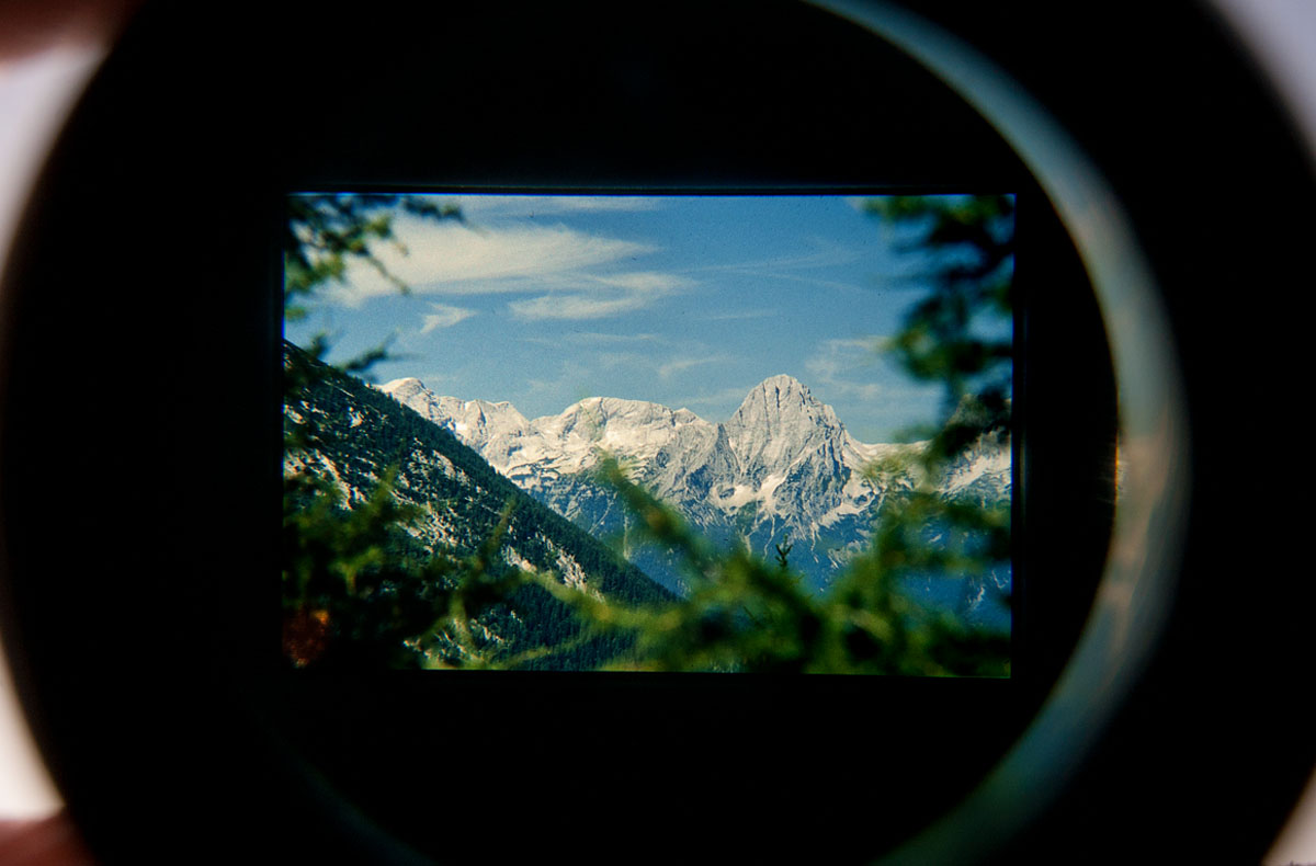 Durch die matte Kunststoffscheibe werden die Dias gleichmässig ausgeleuchtet.