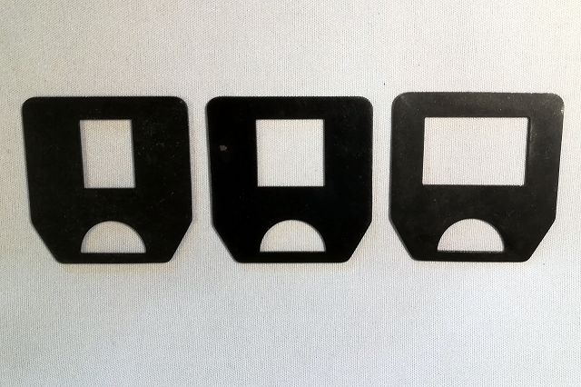 Vermutlich für die Projektion von Filmstreifen waren drei unterschiedliche Blenden dabei