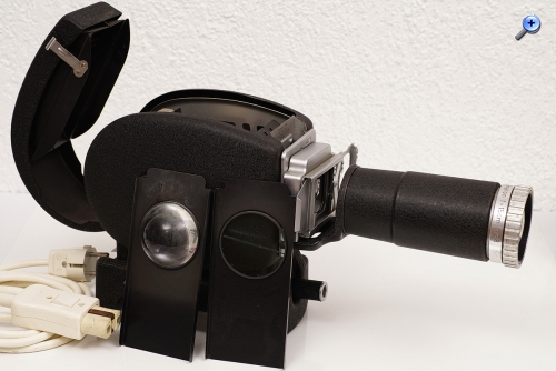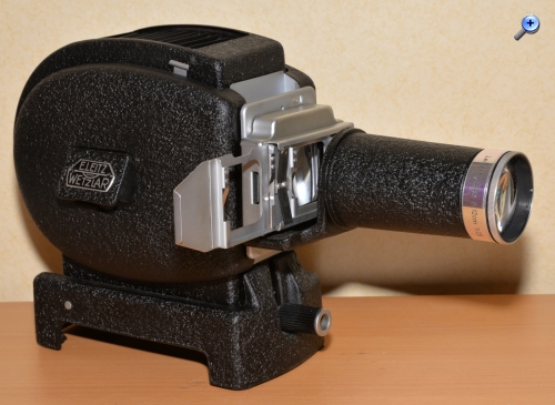Auf jeden Fall ist der Apparat schön schwarz und wirft mit einer 150 Watt Lampe und dem Hektor 12cm 1:2,5 Objektiv die wenigen Dias die ich in meinem Leben gemacht habe hell und groß auf die Leinwand.