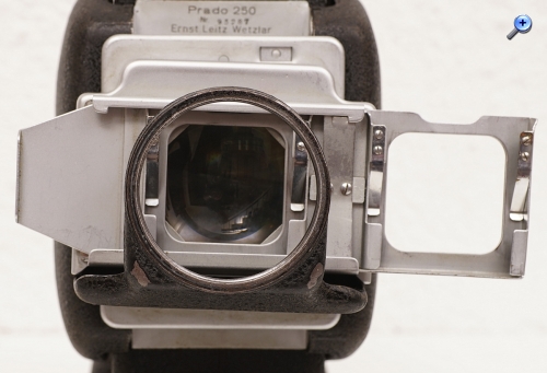 Er hat nur eine besonders dicke 1. Kondensorlinse, wie der moderne Prado 250. Das Wärmeschutzfilter besteht aus 2 Scheibenhälften.