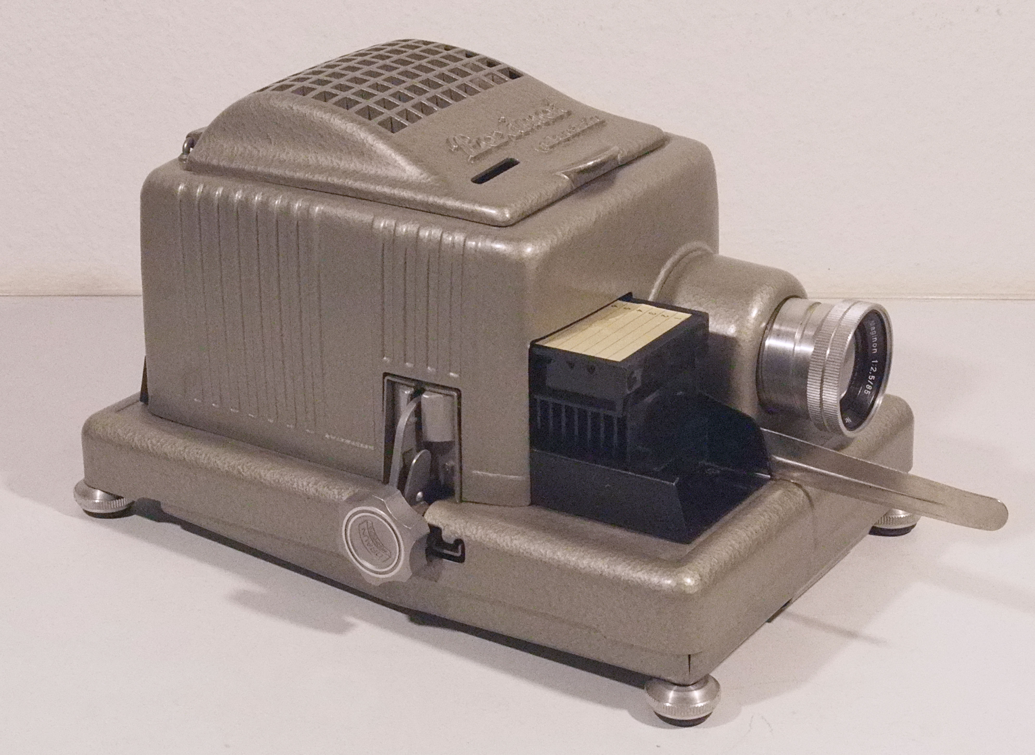 Da werden Erinnerungen wach: Ich hatte von meinem Vater einen Nachbau dieses Projektors für Photo Porst von 1958 mit dem Namen "Hapolux C 150". Ist weiter unten im Thread vorgestellt. Leider habe ich den Projektor nicht mehr, nur mehr ein Foto davon.