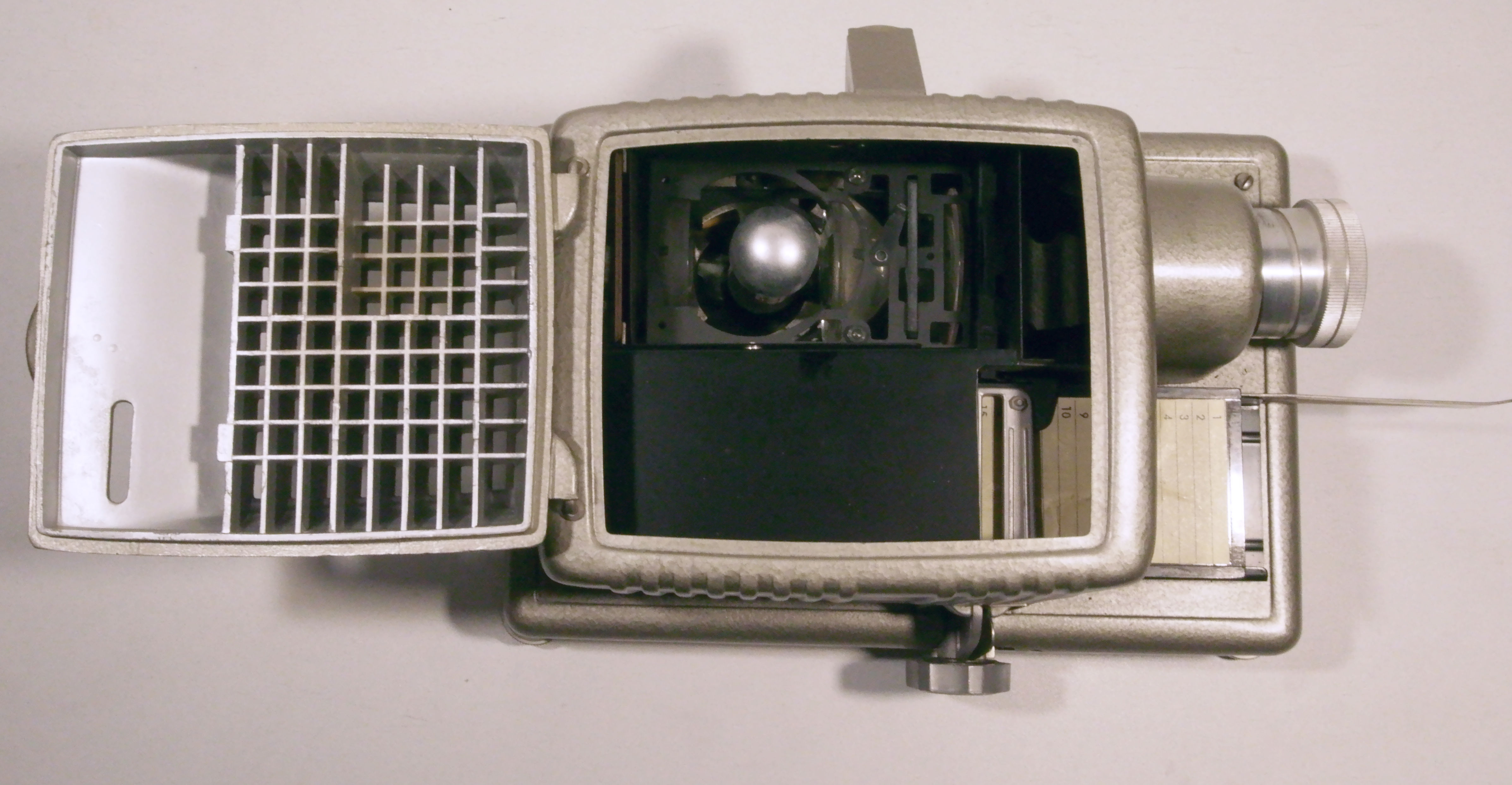 ein Gerät an das ich mich gern aus der Kindheit erinnere. Ein Onkel hatte den Projektor. Besonders der Dom für die Lampe hat mich damals beeindruckt. Mein Onkel hat als Hobby Tiere im Berliner Zoo fotografiert und dabei ein großes Geschick im Umgang mit seinem Tele und der Kamera entwickelt.