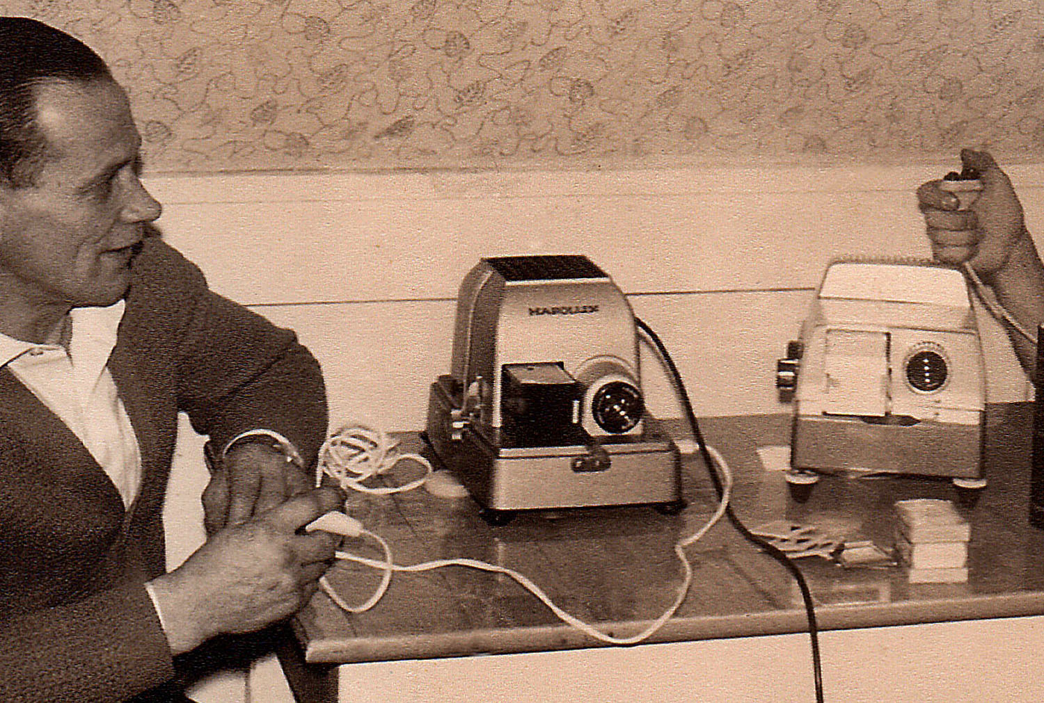 Ich habe jetzt in einer alten Fotoschachtel von meinem Vater noch ein Bild gefunden das den Porst Hapolux und den damals neuen Braun Paximat electric, der 1958 angeboten wurde, auf einem Bild zeigt. Das Foto habe ich 1959 mit 12 Jahren mit der Retinette II B selbst aufgenommen.