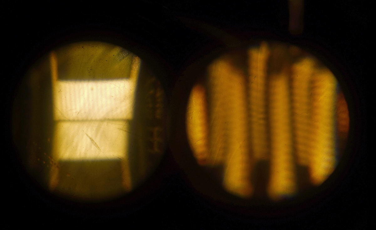 Der Wechsel von 220V/250W auf Halogen 24V/250W stellte den größten Fortschritt dar. Dies sieht man beim Vergleich der Bilder der Glühwendel.