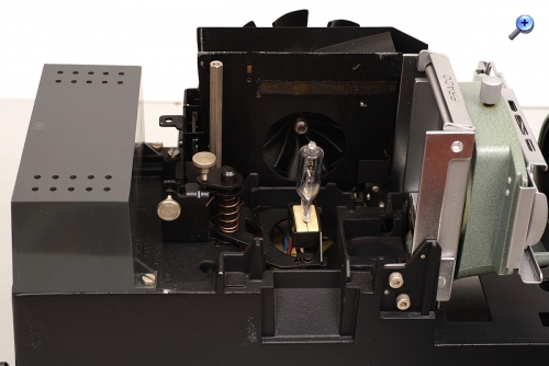 Verstellschrauben für die Lampe sind gut zugänglich. (Beim Vorkriegsmodell waren diese Einstellschrauben sogar außerhalb des Gehäuses!)