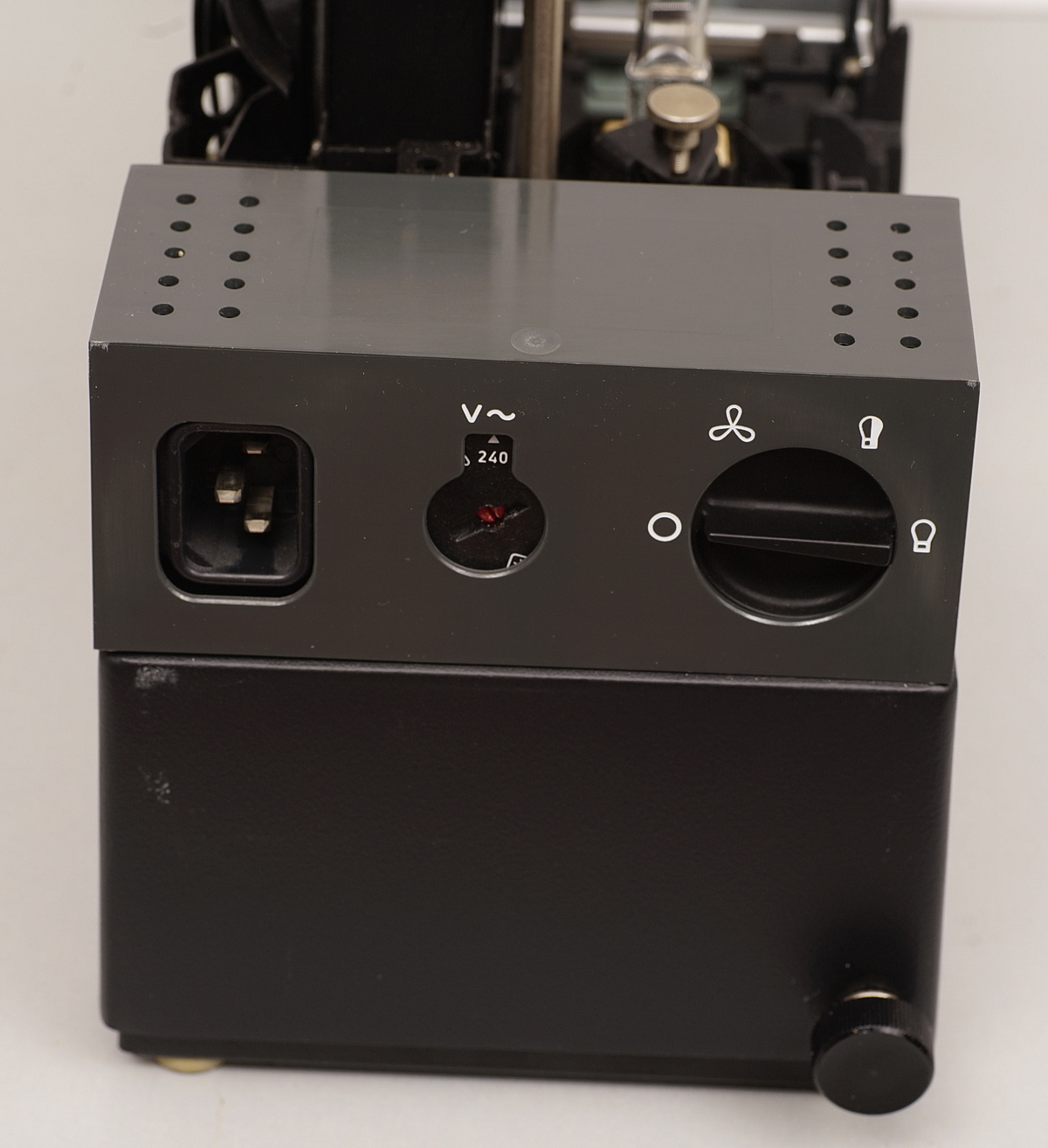 Kondensor: zweilinsig, vordere Linse austauschbar für 5cm; 7,3 .. 9cm; 8,5 .. 12cm; 15 .. 20cm; 20 .. 30cm (Kondensormaße wie beim VIIIs oder beim Prado 250)