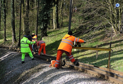 Ich bin zwar nicht Rainer sondern Willi. Aber die Geschichte kann ich dir trotzdem erzählen. Ich war im Mai 2008 fast täglich auf dem 537 m hohen Linzer Hausberg unterwegs um die Arbeiten an der Erneuerung und Umspurung der elektrischen Bergbahn zu dokumentieren. Dabei bin ich an einem regnerischen Morgen plötzlich in einer Waldschneise vor dem Episkop gestanden. Die Bauarbeiter durften beim Gleisbau ohne LKW-zufahrtsmöglichkeit alle Arbeiten händisch erledigen.
