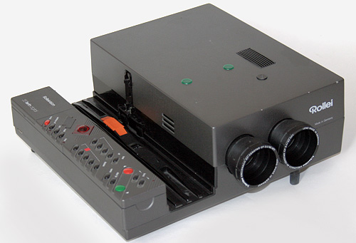 Der Rollei twin ist ein digital gesteuerter Überblend-Diaprojektor 24x36 mm mit zwei Projektionssystemen und einem Diamagazin.