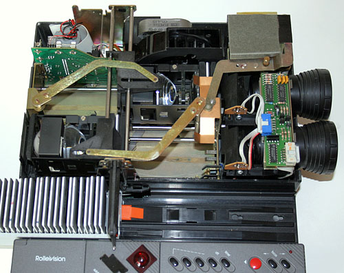 Ich hab einmal gelesen, daß der Umbau zum 3D Projektor für das Anaglyphen-Verfahren mit den Rollei Typen MSC 330 versucht wurde, weil diese mit den 250 W Lampen viel lichtstärker sind. Beim 35 twin würde durch die Verwendung der Polfilter oder Farbfilter viel Licht verlorengehen. Wäre aber sicher interessant, Versuche in diese Richtung zu machen.