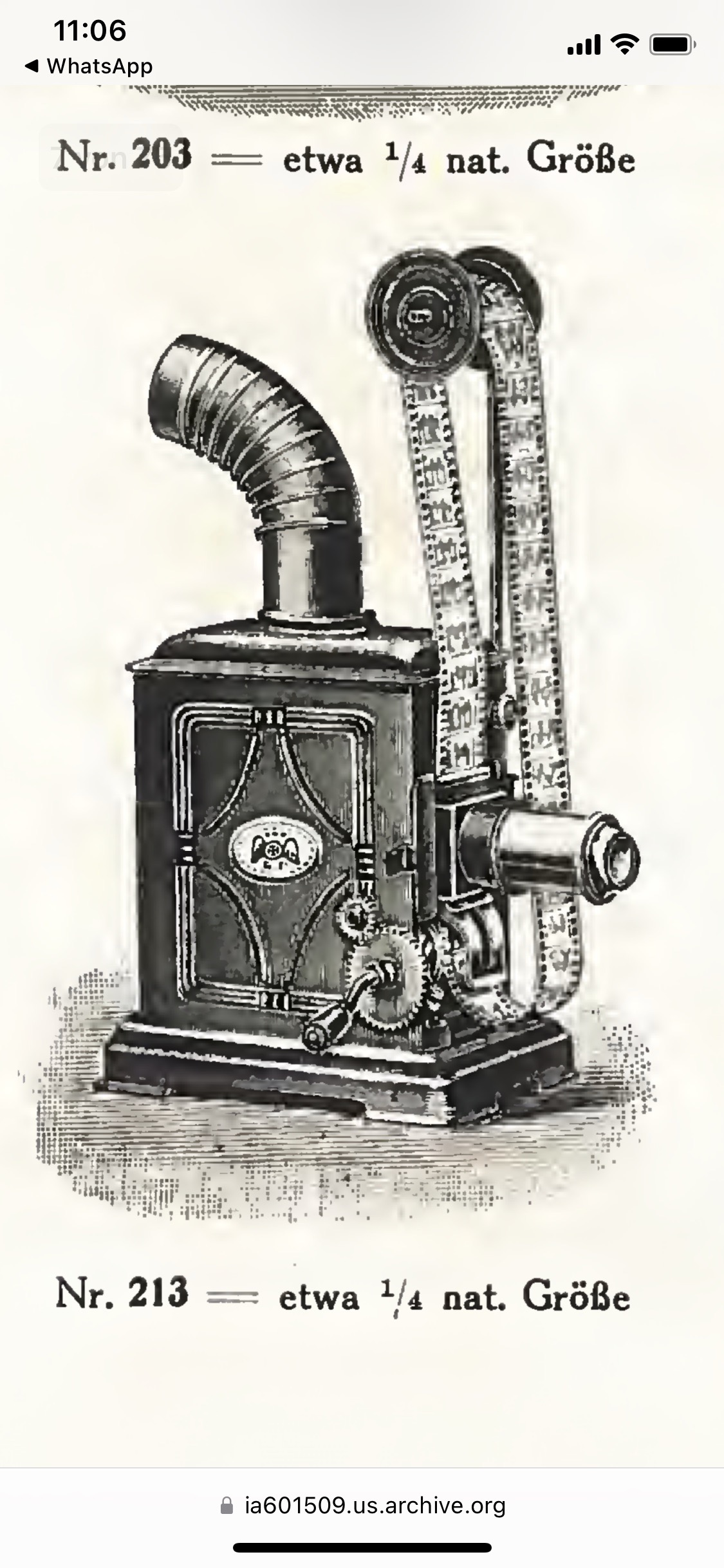 natürlich kann man auch einen Langfilm damit vorführen aber das ist bei diesen Geräten nicht vorgesehen Die Geräte von Planck oder oder von anderen Herstellern wurden als Kinderspielzeug angesehen, eben eine fortschrittliche Laterna Magica.