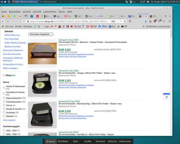 Hi, ich gebe so gerne Antworten auf Sachen, nach denen mich keiner gefragt hat ;) . Beim Versteigerungshaus gibt's doch eine Kategorie "Filme & Entertainment auf Zelluloid".