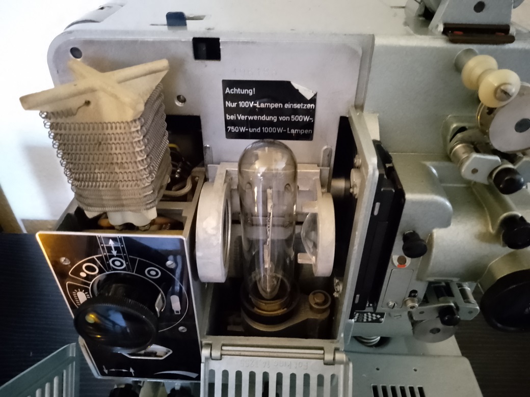 schönes Teil! Meine Neuerwerbung hat noch den alten Röhrenverstärker mit Aufnahmefunfktion für Magnetton. Nicht dass ich vorhätte in dieser Richtung tätig werden zu wollen, aber so ist der Projektor halt vor einer kleinen Ewigkeit von Siemens konfiguriert worden.