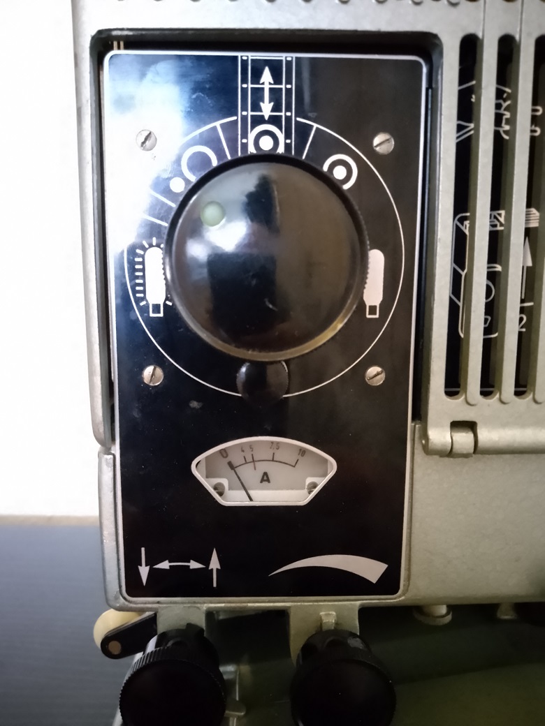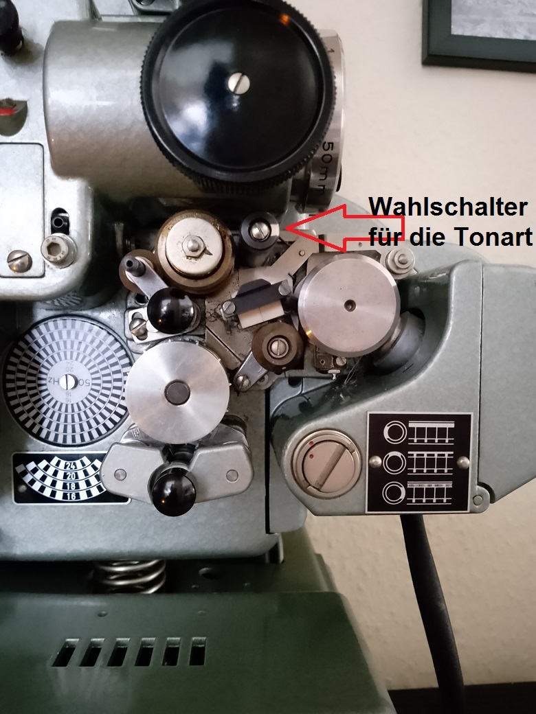 meine Neuerwerbung hat neben dem Schalter für das Pilotlicht noch diese/n Taste/r. Leider konnte ich in den mir vorliegenden Anleitungen nichts über die Funktion finden. Der Projektor ist mit einem festverbauten Röhrenverstärker für Licht- und Magnetton mit Aufnahmefunktion ausgestattet.