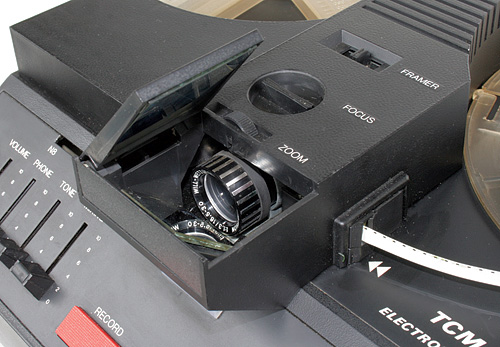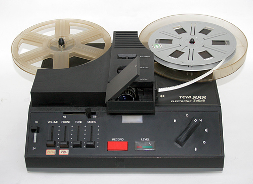 1979 brachte die Turiner Firma TCM einen Tonfilmprojektor für Normal 8 und Super 8 Filme auf den Markt, der eher an eine Tonbandmaschine als an einen Filmprojektor erinnerte. Der Filmtransport erfolgte nicht wie üblich mittels Zahntrommeln sondern durch Gummirollen mit getrennten Antrieben für Film- und Tonteil.