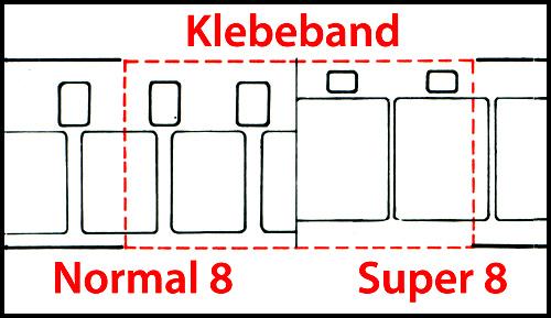 Filmtyp: Normal 8, Super 8, Single 8, umschaltbar
