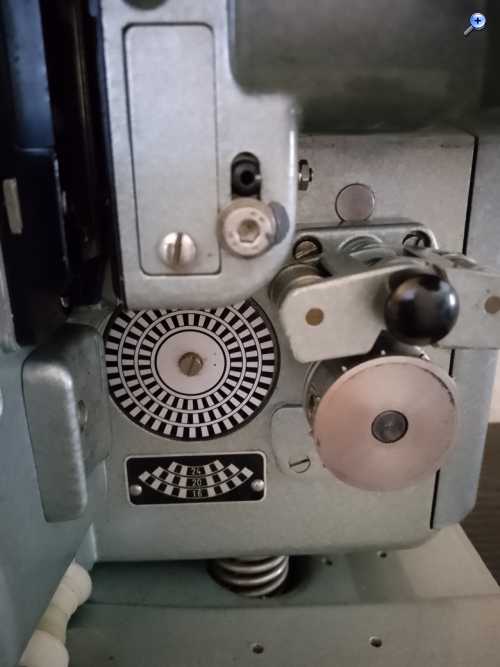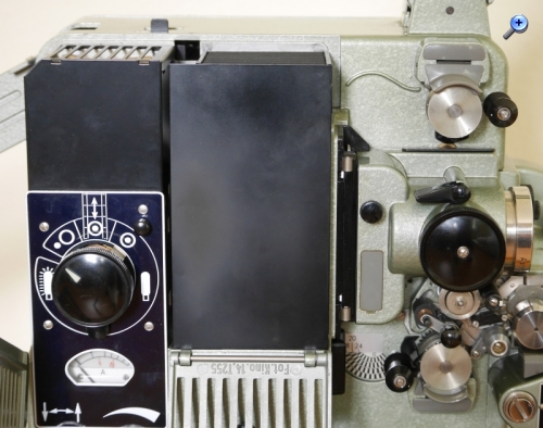 meine Neuerwerbung hat neben dem Schalter für das Pilotlicht noch diese/n Taste/r. Leider konnte ich in den mir vorliegenden Anleitungen nichts über die Funktion finden. Der Projektor ist mit einem festverbauten Röhrenverstärker für Licht- und Magnetton mit Aufnahmefunktion ausgestattet.