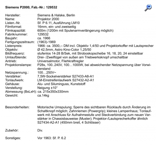 Re: Siemens 2000 16mm Projektoren (Stummfilm- u. Tonfilm-Varianten)