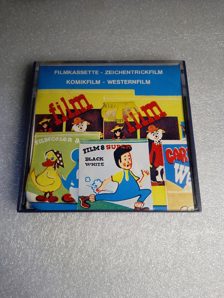 vor einigen Tagen habe ich 3 Super 8 Zeichentrickfilme geschenkt bekommen. Außer der Beschriftung Filmkassette - Zeichentrickfilm - Komikfilm - Westernfilm ist auf den Kassetten keinerlei Hinweis zu finden aus welcher Serie oder von welchem Hersteller die Filme stammen könnten. Gibt man die Stichworte in die große Suchmaschine ein erhält man als Treffer zwei Kaufangebote einer Verkaufsplattform. Interessant sind dort die noch vorhandenen Preisaufkleber, die auf KARSTADT hinweisen. Auf einer meiner Kassetten ist der Überrest eines Preisschildes vorhanden auf dem die Buchstaben "RST" gerade noch lesbar sind. Handelt es sich evtl. um eine exklusiv für KARSTADT aufgelegte Serie? In der recht aufwendigen Verpackung verbergen sich jeweils 15 Meter Spulen.