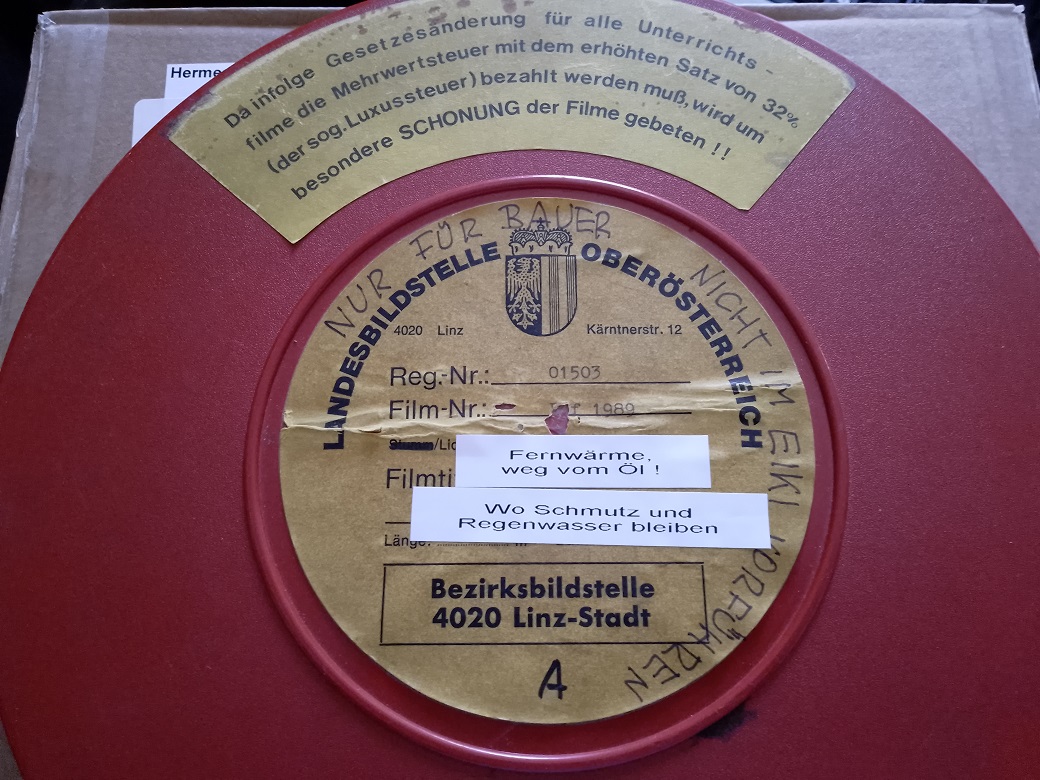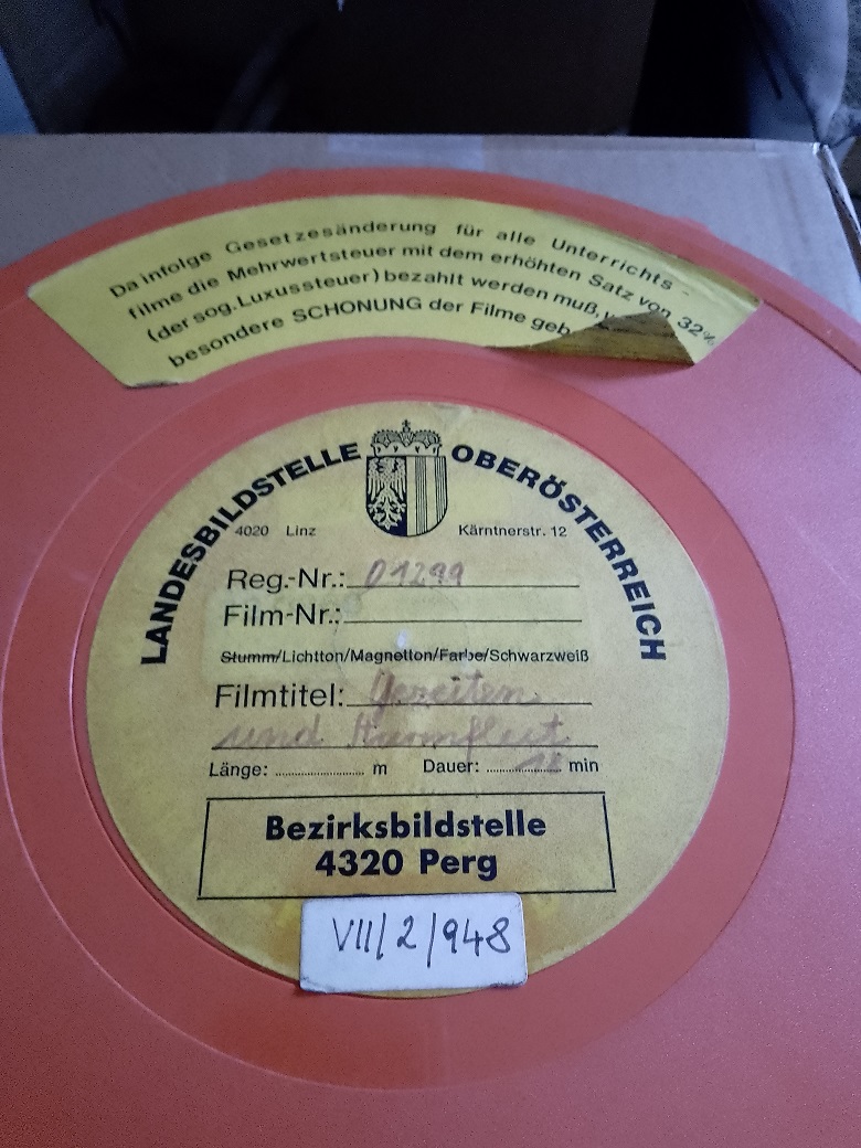 Bauer hatte allerdings auch Projektoren mit automatischer Einfädelung im Programm. Da zwei weitere Filmdosen aus der LANDESBILDSTELLE OBERÖSTERREICH diesen Hinweis nicht auf der Beschriftung haben, kann es vielleicht am Filmmaterial liegen?
