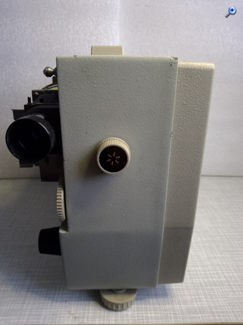 Hersteller: LOMO, Leningrad, UdSSR Modell: RUSS (PUCb) Typ: Zweiformat (Normal/Doppel 8 und Super 8) Stummfilmprojektor Baujahr: 1969 - 1975 maximale Spulengröße: 120 Meter Stromversorgung: 100 - 240 Volt Wechselstrom (im Projektor einstellbar) Projektionslampe: 12 Volt 100 Watt Stiftsockellampe (mit Sparschaltung 90 Watt) Objektiv: LOMO OP-1.8 F-18 11,4 Seriennummer: 7430992 Projektor Seriennummer: 7445946 Gewicht: ca. 5000 Gramm Abmessungen: HxBxL: 280x125x195 mm Stückzahl und Neupreis unbekannt