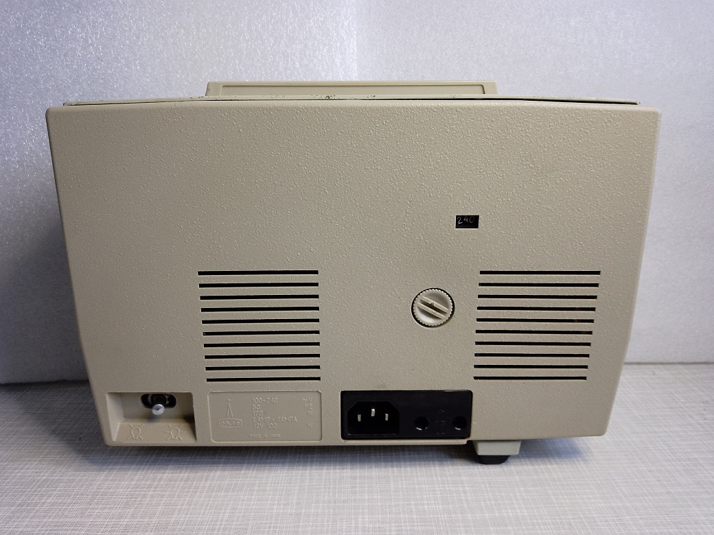 Rückseite mit Sparschaltung, Netzanschluß, Stecker für die Tischleuchte und Sichtfenster für die eingetellte Natzspannung