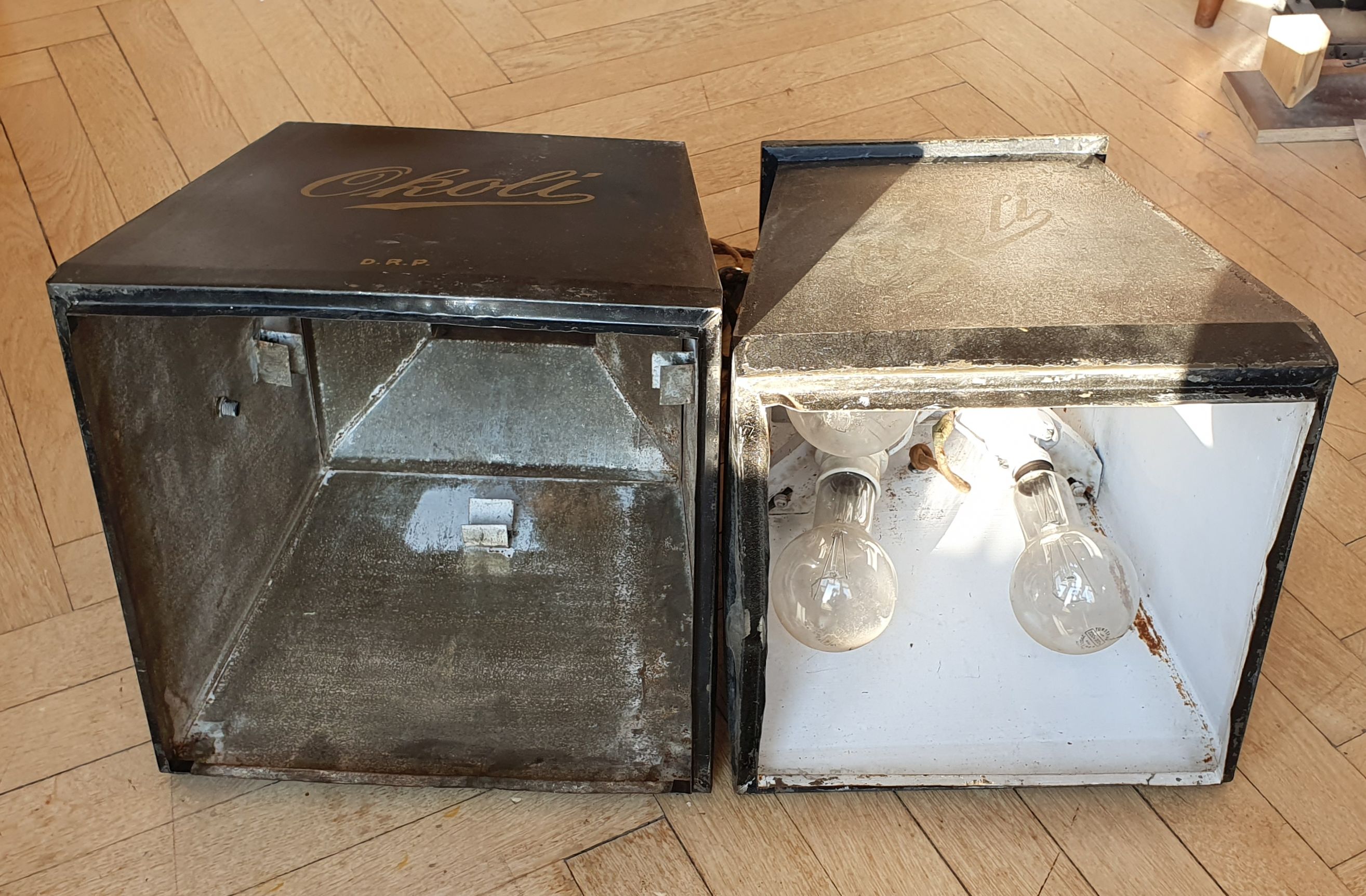 ich habe jetzt das Zweitgerät des Okoli bekommen. Wie nicht selten, gab es mal wieder eine üble Überraschung, die mir erst beim direkten Vergleich beider Geräte auffiel und die die Weiterverwendung von Teilen erschwert bzw. unmöglich macht. Das Zweitgerät ist offensichtlich etwas älter als meine erste schwarze Anschaffung und obwohl die Negativbühne für beide Geräte exakt gleich für 24 x24 cm ausgelegt ist (hatte ich vorher abgefragt), ist die Lampenhaube statt 33 x 33 cm (Grundfläche, außen des Erstgeräts) nur noch 30x30 cm bei der letzten Neuerwerbung. Mein Vorhaben die Lampenhaube bei Gebrauch einfach umzusetzen ist damit obsolet.