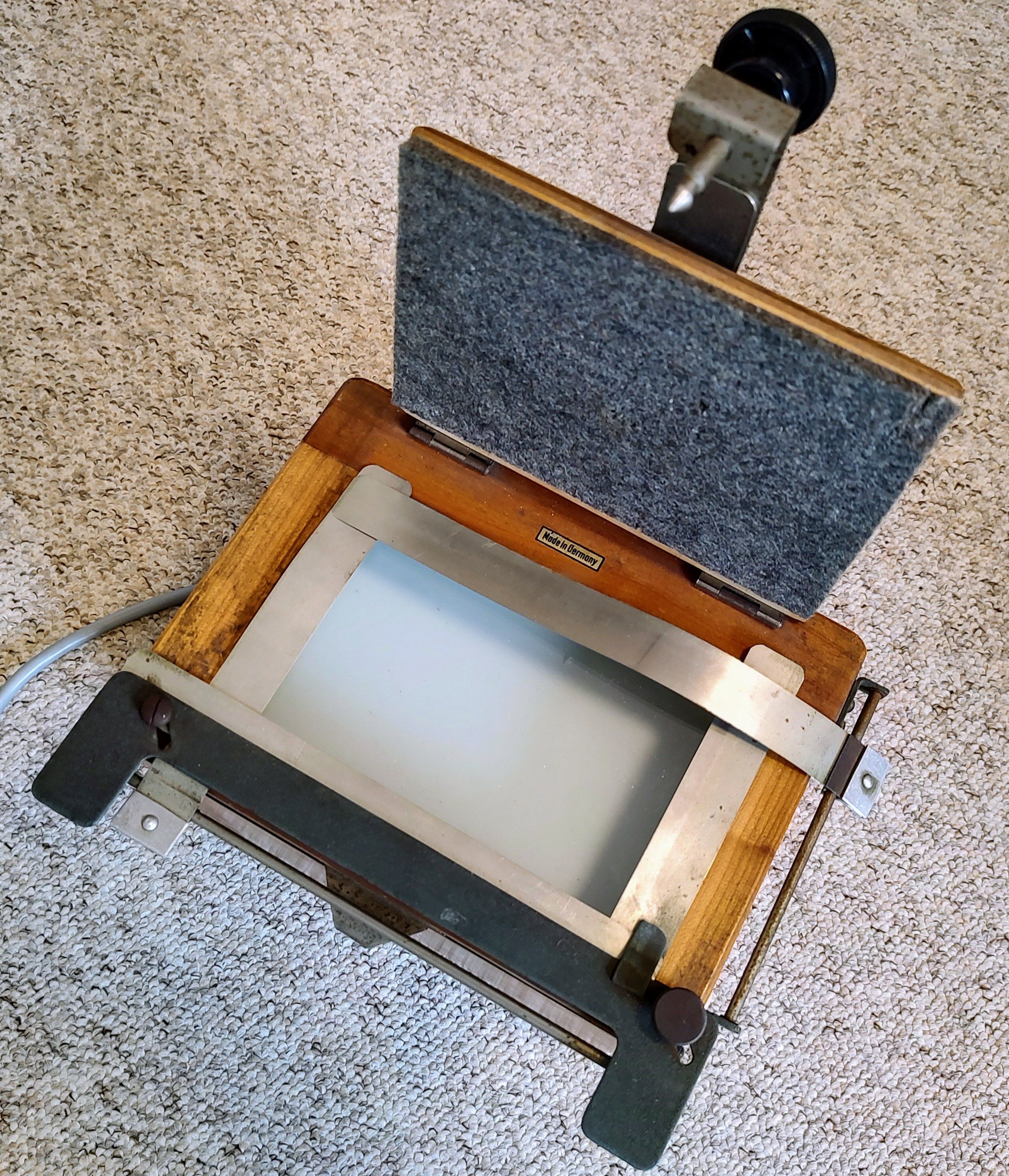 Das Gerät ist gut geeignet für Kontaktkopien ab 6x9 cm und für Planfilm-Negative (9x12 cm). Die 1861 gegründete Firma Kindermann (ehem. Ochsenfurt/Berlin), die mal besonders für ihre Diaprojektoren, Episkope und Heimlabor-Geräte bekannt war, gibt es immer noch, nur produziert sie heute digitale Konferenz- und Medientechnik, aber keine hölzernen Kontaktkopierer mehr. Tempora mutantur!