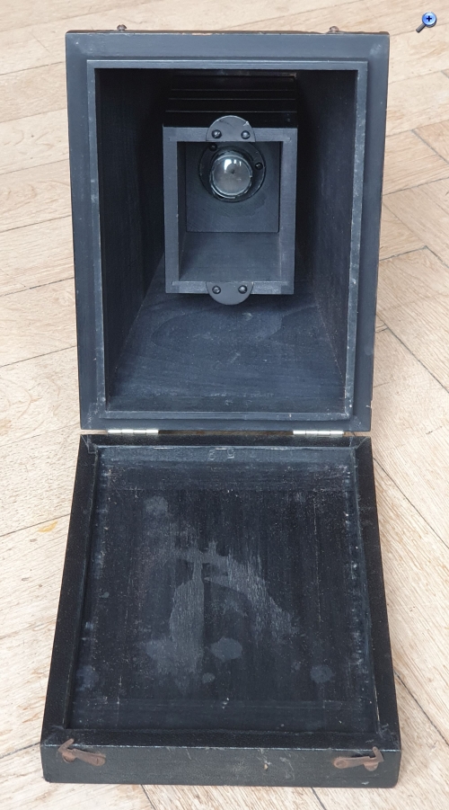 ich hab noch einen von diesen Kästen aber mit Beleuchtung von oben in Blech. Ich kann den auch noch fotografieren und die Negativ- und Vergrößerungsformate nachtragen. Der Goerz hatte ca. ein 3x4 cm Negativformat.