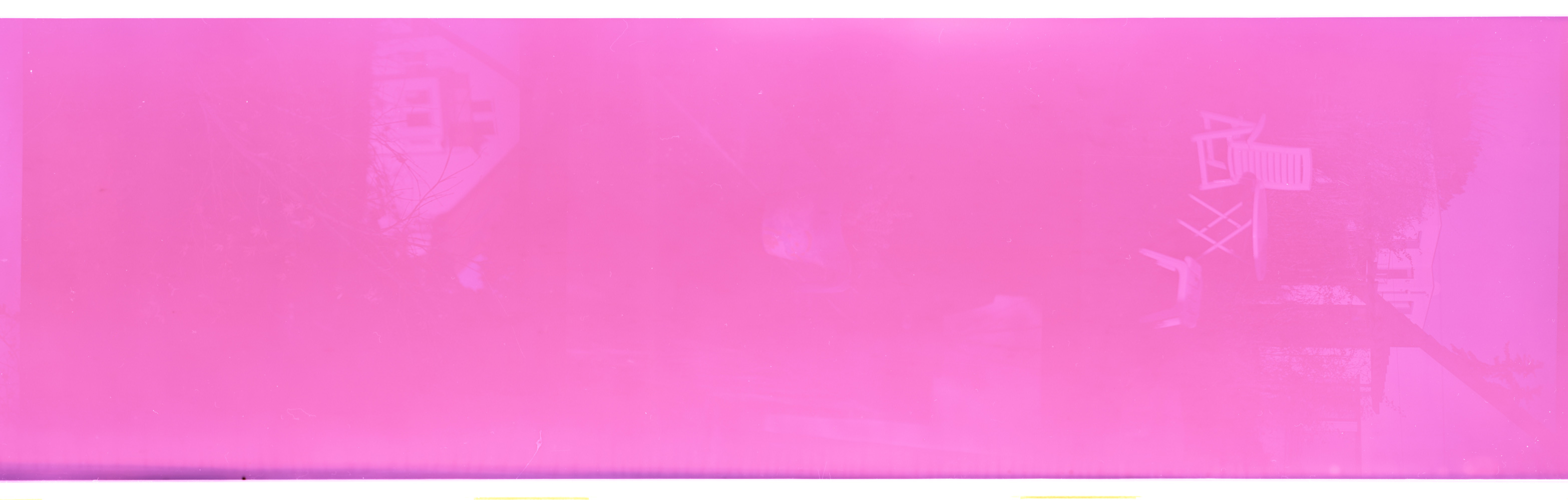 ich habe den Test auch noch mit einem ORWO UT18 (Diafilm) gemacht: aufgenommen mit KWT Reflekta (Pololyt/Junior) und entwickelt im CINESTILL CS41 Color C-41 2-Bad-Prozess für 8 Minuten bei 30 Grad. Die erste Inaugenscheinnahme zeigte keine sichtbaren Bilder auf den grünen Negativen: