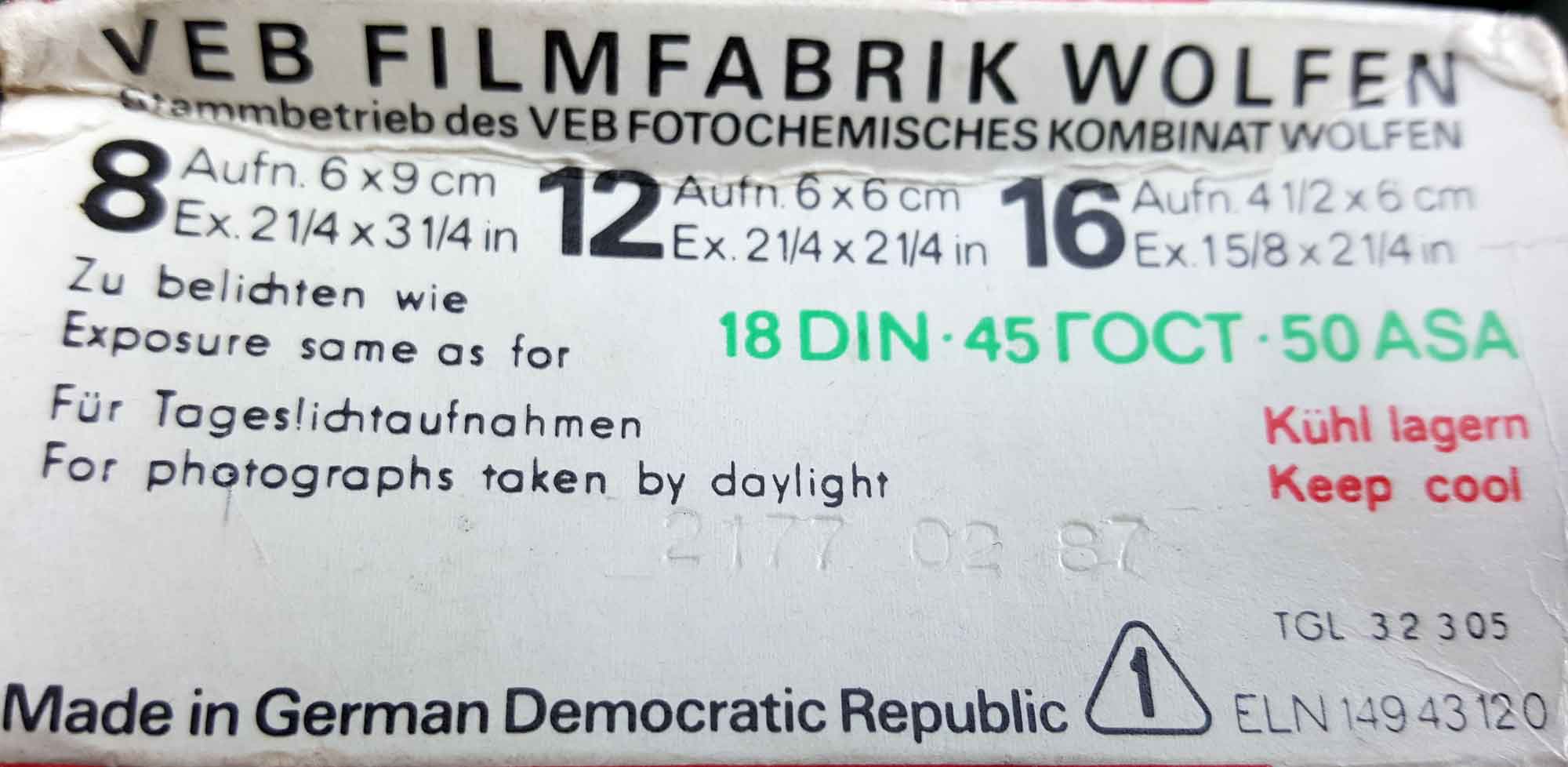 Lichteinfall kann ich bei der alten Kamera nicht ausschließen. Es ist aber auch so, dass diese alten Filme meist von den Rändern her schneller altern (bzw. nachlassen/abgebaut werden). Zumindest ist das meine Beobachtung der Entwicklung alter Filme – es sei denn, man nimmt an, dass alle Kameras Lichteinfall hatten. Ich werde die Reflekta noch mal mit einem neuen Film testen. Was die „Anders-Farben-Bereiche“ betrifft, kann ich technische Fehler bei der Entwicklung weitgehend ausschließen, da ich an dem Abend auch noch weitere (neue) Filme ohne Beanstandung entwickelt habe. Ein „Fehler“ ist natürlich die Verwendung eines ungeeigneten Entwicklungsverfahrens. Man sollte bei der Bewertung der Ergebnisse aber auch immer bedenken, dass es sich um einen über 36 Jahre alten Film handelt, der unter nicht nachvollziehbaren Bedingungen (die UT18 Filme habe ich mir aus Bulgarien schicken lassen) gelagert wurde.