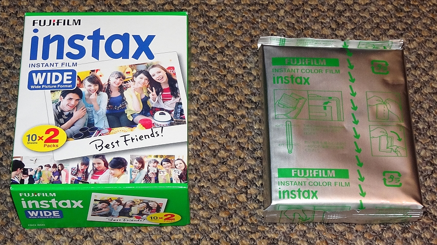1) Instax Mini: Konfektionierung als Doppelpack mit 2 x 10 Aufnahmen. Bildgröße 4,2 x 6,2 cm mit Beschriftungszone. 800 ASA