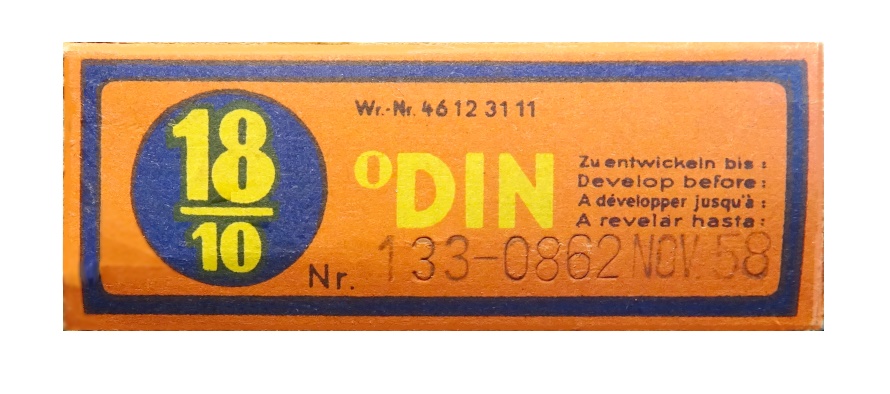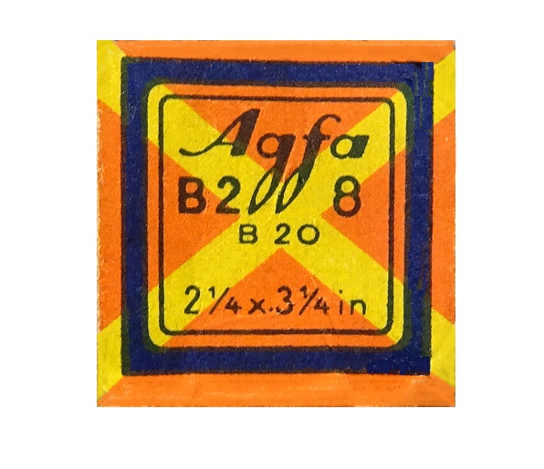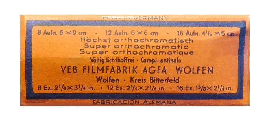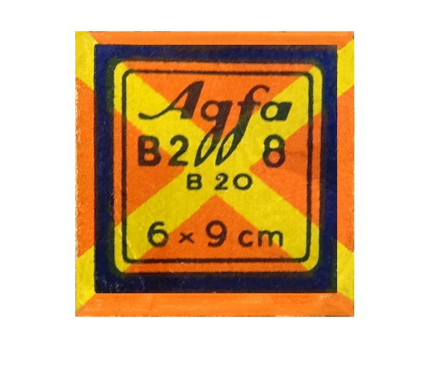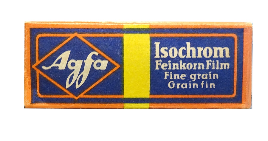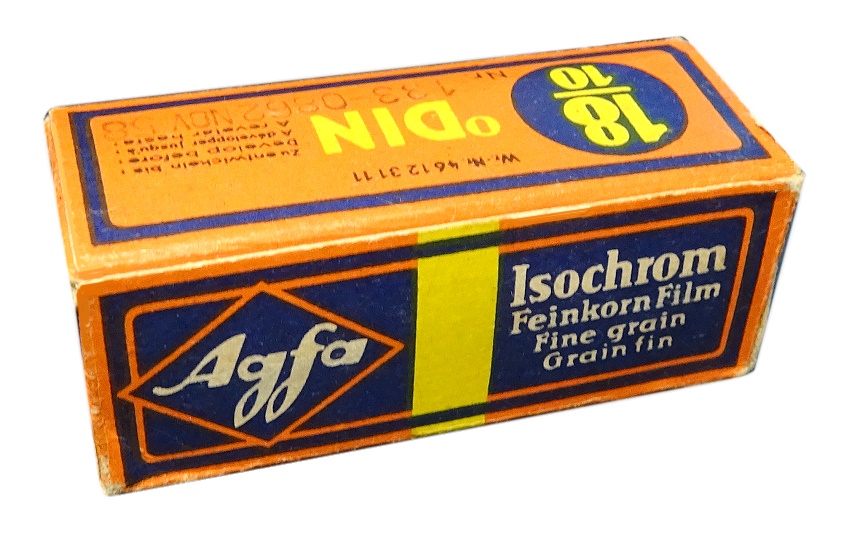 | Portrait eines Agfa Isochrom Farb-Negativ-Rollfilm-Kartons |