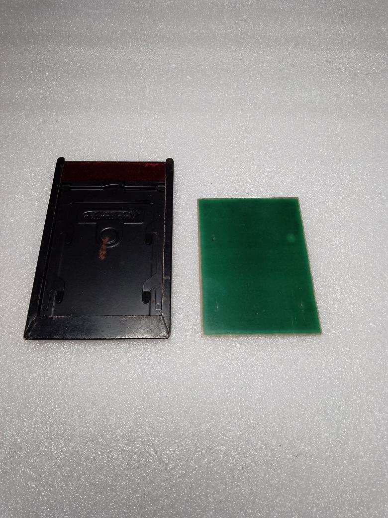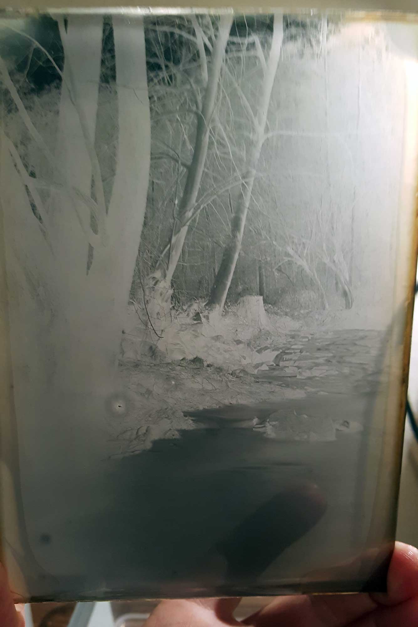 in einem angekauften Konvolut diverser Plattenkassetten befanden sich auch einige Trockenplatten unbekannten Alters und Zustands. Die Schichtseite fühlt sich ein wenig anders, nicht so glatt, wie die Glasseite an. Ob das nun bei allen Trockenplatten so ist kann ich natürlich nicht sagen. Handschuhe werden sicherlich auch das Gefühl verfälschen da ich mir nicht vorstellen kann, dass es sinnvoll ist die Platten mit nackten Fingern zu berühren.
