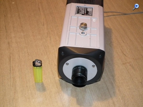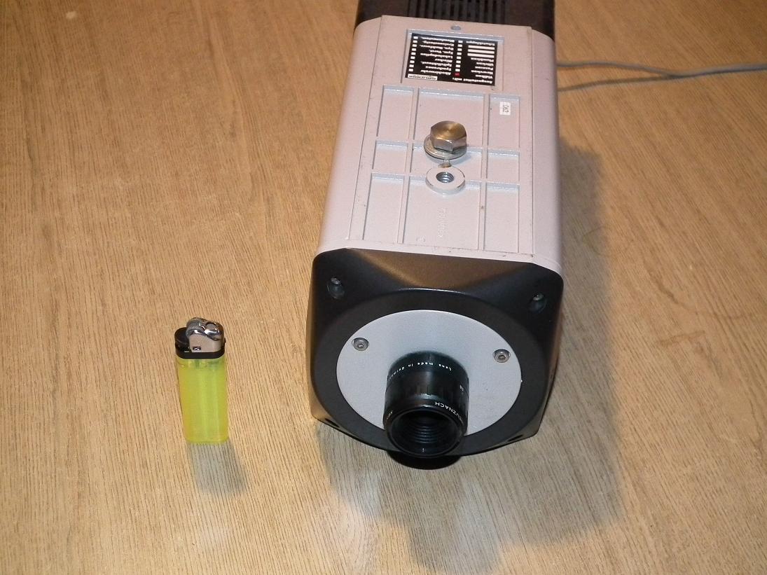 FA76, dicke schwere SW-Alu-Druckgußkamera mit Vidikonröhre Valvo XQ1440 (sicht- und IR empfindlich), bestückt mit einem Xenoplan 1,9/25 von Schneider Kreuznach.