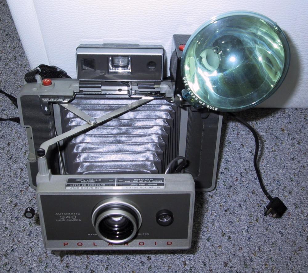 Seit der Doku "Die Magie des Augenblicks" vor einigen Monaten auf ARTE hat mich das Thema nicht mehr in Ruhe gelassen und nach der SX70 habe ich heute wieder was bekommen. Eine "Polaroid 340 Land Kamera" inkl. Tragetasche,originaler Anleitung,Blitzgerät und einer "Wärmeentwicklungshülle". Leider fehlt der Frontdeckel der an die Kamera kommt und der wird sicher nirgends mehr aufzutreiben sein. Die Kamera ist gepflegt und macht einen tollen Eindruck,ist noch etwas ungereinigt aber der Balgen ist dicht es war sogar noch eine alte Batterie drin.Diese wird aber ersetzt... Da wäre auch gleich wieder das Problem,denn es gibt Umbautips mit Hilfe eines Batteriehalters für 1,5V Batterien oder auch neue Ersatzbatterien des Typs 531.Als Sammler steht man da vor dem Problem,so einen kleinen Umbau zu machen oder lieber ca 13,-€ für eine Ersatz 531 auszugeben die ja aber auch sehr lange halten soll. Polaroidkassetten habe ich auch schon gesehen aber da muß ich auch erstmal gucken was da am besten wäre vom Preis und Qualität.