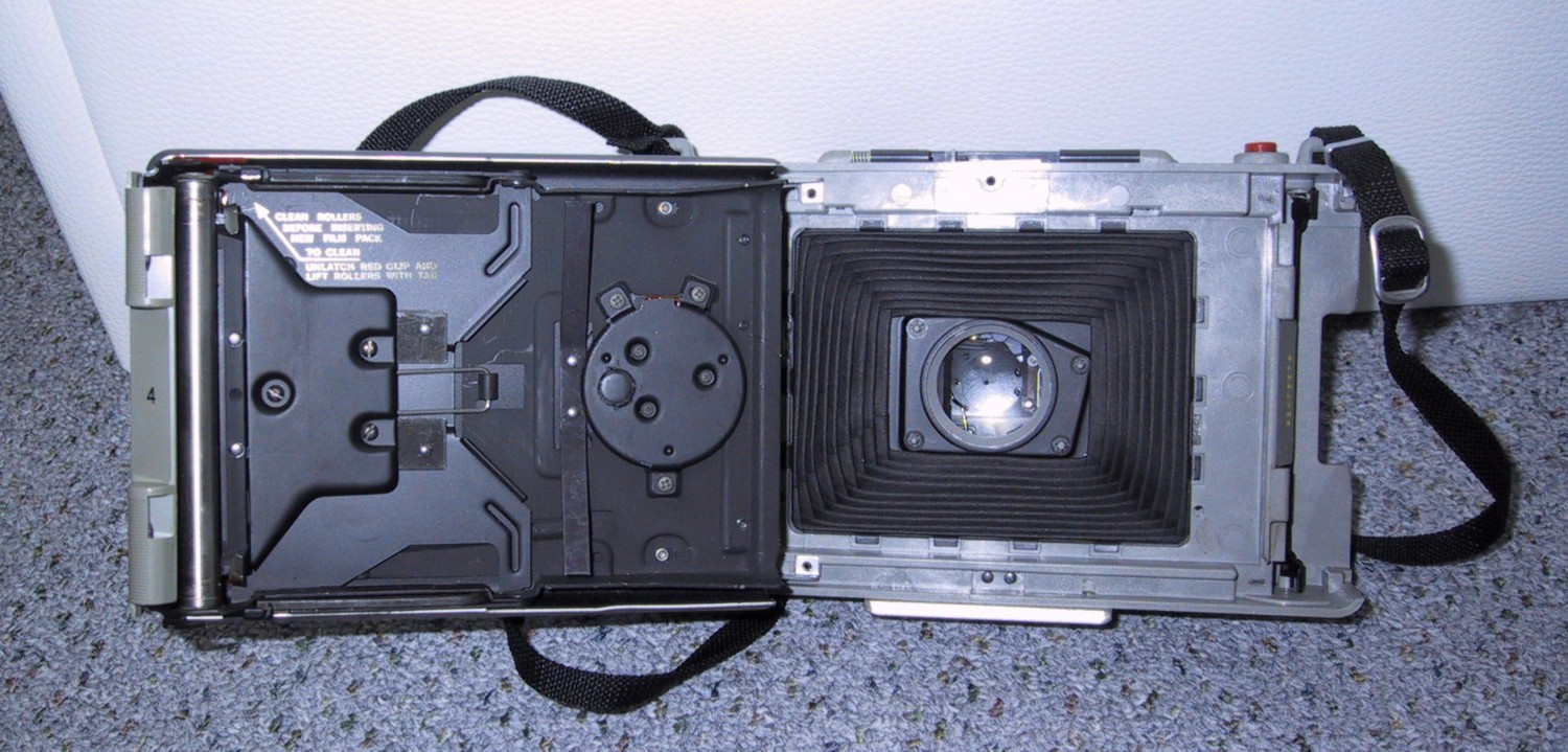 Hersteller: Polaroid Land Baujahr: 1969 Film: 75, 150, 300, 3000 Objektiv: Glas, 3 Linsen Blenden: f/8.8, f/12.5, f/17.5, f/25, f/35, f/42 Verschluss: 10 Sek bis 1/1200 Sek ! Sucher: Oben ausklappbar, mit Parallaxen und Schärfe-Korrektur Blitz: Birnenblitzanschluß Entfernungsmesser: ja Entwicklung: Mit Timer (mechanisch) Batterie: 531, 4,5 Volt