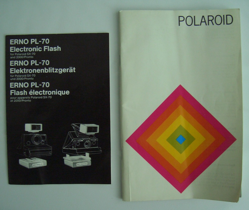 Angespitzt durch eine TV-Doku habe ich mich danach auch die Suche gemacht und eine "Polaroid SX70 Land Camera Alpha"-Black Version gekauft. Die Kamera habe ich netterweise inkl. der Ledertragetasche ,originalen Anleitungen und einem damals als optionales Zubehör zu kaufendes Blitzgerät bekommen. Das Blitzgerät ist ein "Erno PL70" und wird unter die Kamera druntergeschoben und ein Teil oben in einen Schlitz bei der SX70 reingesteckt. Der Zustand der Kamera ist toll und wird hoffentlich bald wieder benutzt,wenn ich die Filme bekomme. Die originalen Lederteile sind leider sehr mitgenommen und bröckelig.Doch ich habe jemanden gefunden der solche Lederstücke gleich fertig zugeschnitten liefert mit einer selbstklebenden Rückseite und in diversen Farben.Muß mir mal überlegen welche ich genau nehme ob wieder die originalen oder mal was anderes...