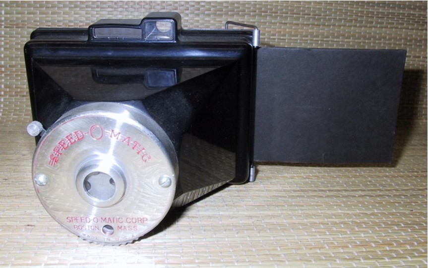 Eine interessante Kamera ist die amerikanische SpeedOMatic. Es gibt einen eigenen Entwicklungstank dafür. Der Film ist blattweise in Karton verpackt und kann unmittelbar nach der Aufnahme bei tageslicht entwickelt werden.