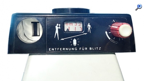 Blitz: ja. Blitzbirnen (AG-1). Bei Blitzbetrieb ist die Entfernung einstellbar, es wird aber dabei die Blende gestellt. Mechanischer und manueller Blitzbirnen-Auswurf.