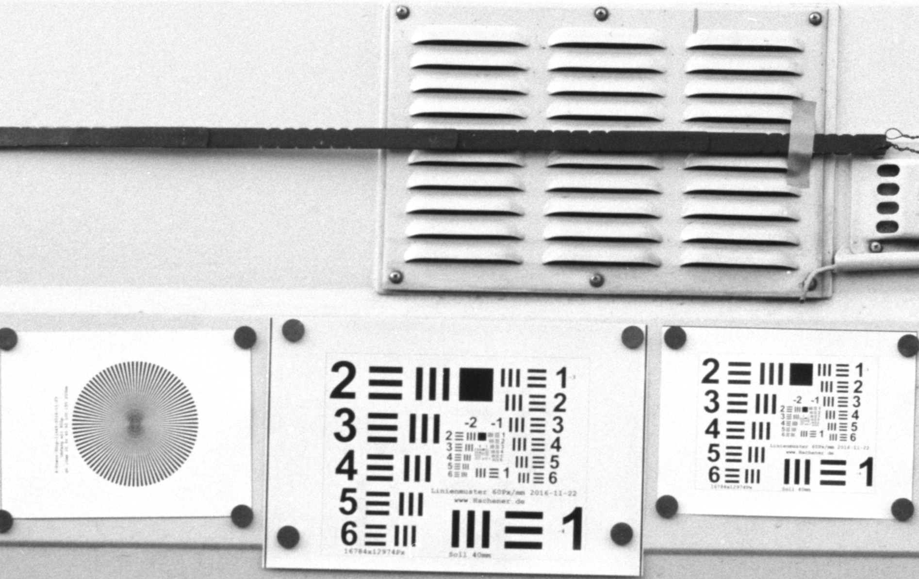 Im Urlaub habe ich mal die beiden Digitalen meiner Frau und mein 6x9 3-Linser im Vergleich testen wollen. Nur mal so! Bei Rossmann habe ich 3 Vorlagen (keine 5Euro) belichten lassen und diese dann an die Seitenwand von unserem Womo gehängt. Auf der WOMO-Breitseite habe ich dann grob eine Breit von 4,20 Meter gekennzeichnet. Die Analoge auf 4,20m Abstand gestellt und belichtet. Klar, alles vom Karbone-Stativ! Die beiden Digitalen mit jeweils 6mm Brennweite musste ich auf 4,3m Entfernung stellen, um diese 4,2 Meter Wohnmobil-Breite exakt auf dem Sucher zu erhalten. Ich hatte erwartet, dass diese Digitalen auch bei 40xBrennweite, also 40x6mm=240mm stehen müssten. Also ist da an meiner Milchmädchenrechnung wohl etwas falsch. Und was zeigt es? Der analoge Oldie ist etwas besser? Nur ein bischen? Bitte, bitte, bitte sagt, dass das Mittelbild deutlich besser ist! Danke. Nee, nur anders. Den Siemens-Stern kann er aber wirklich besser, oder? Ob das alles bei mir etwas gebracht hat? Egal, es hat trotzdem Spaß gemacht. Und? Ich zeigs Euch einfach. Mfg Berthold