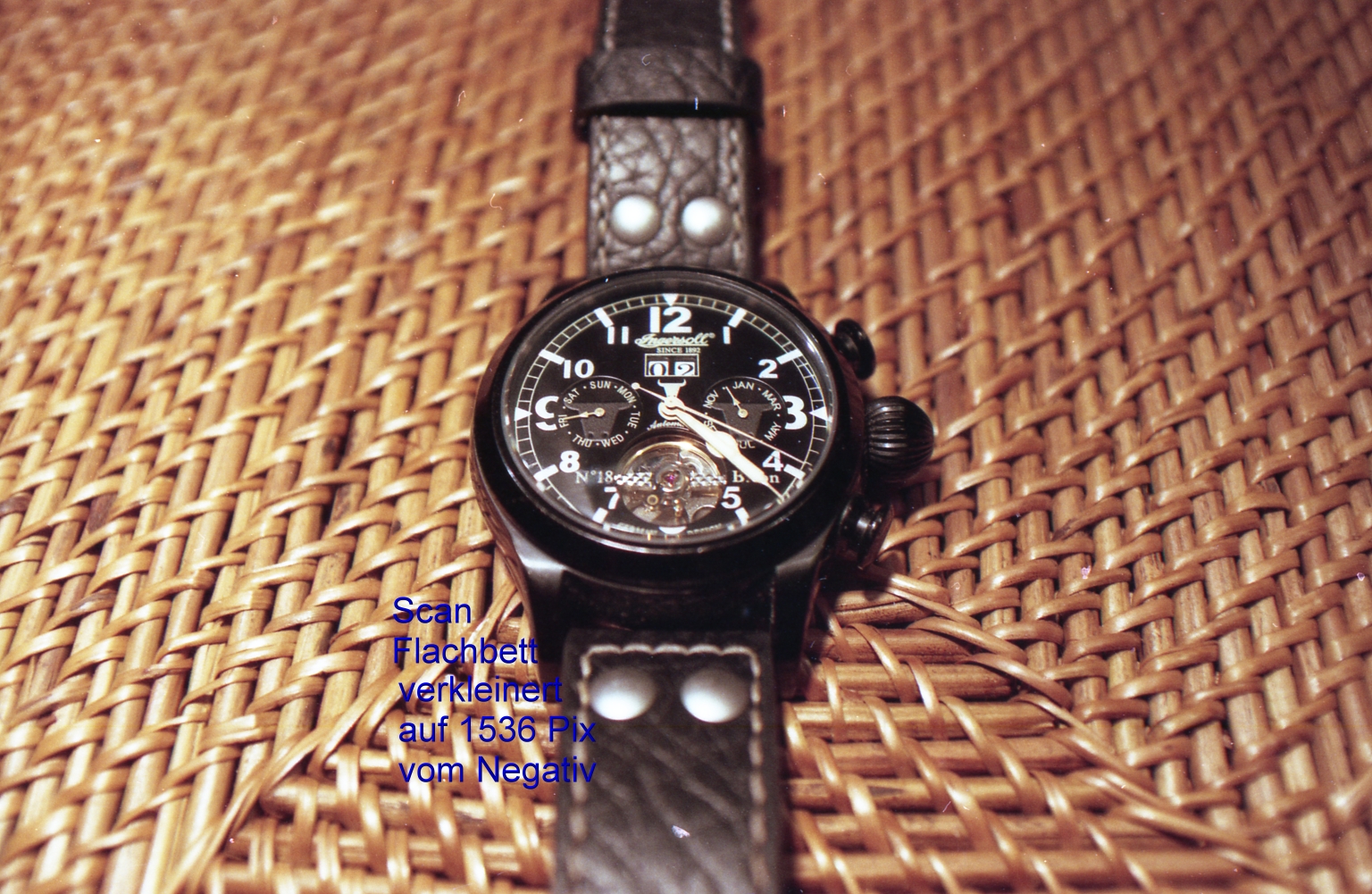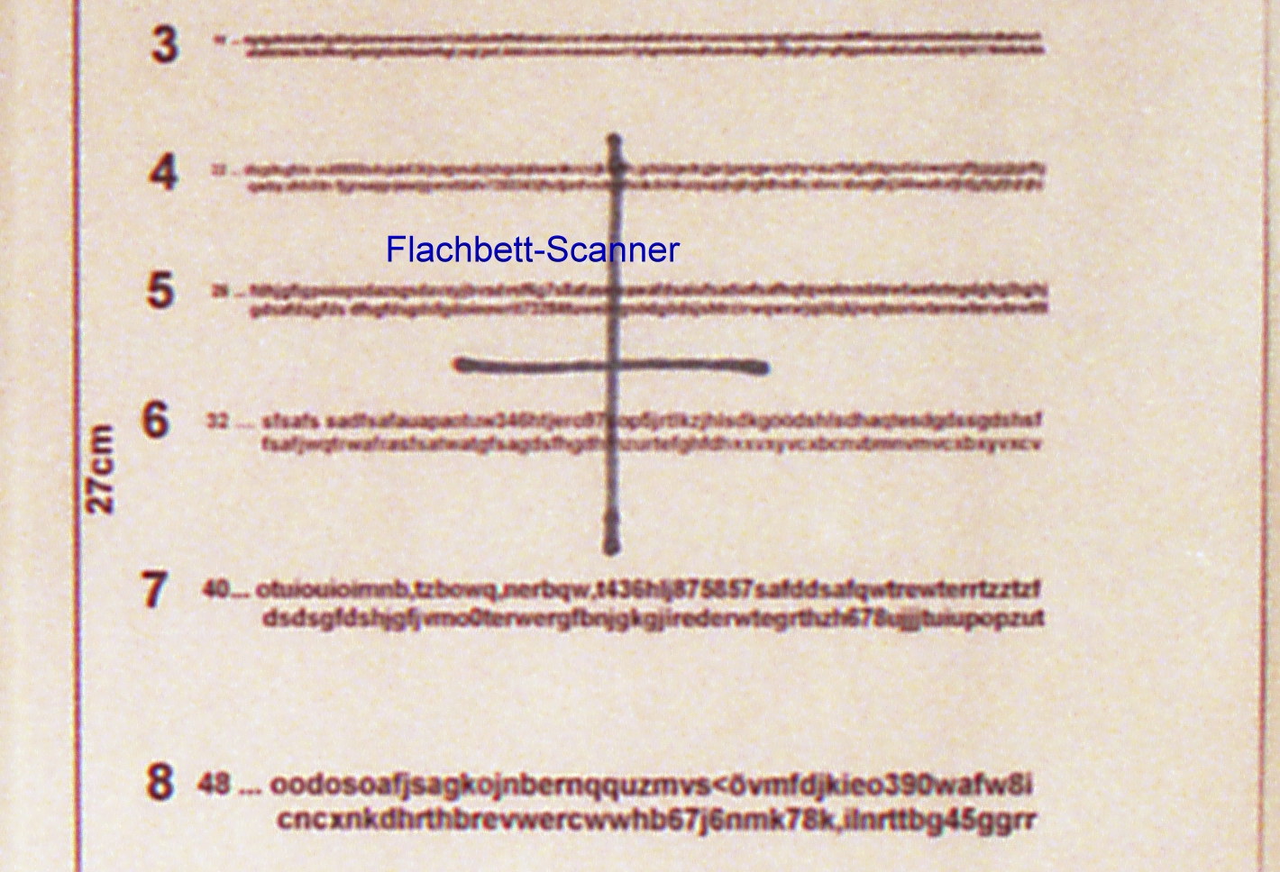 Die CD-Foto-Scans können gerade noch Schrift 7 bis 8 liefern, die Flachbett-Scans vom Negativ bringen Schrift 5 (je kleiner die Schrift-Größe, desto besser die Auflösung).