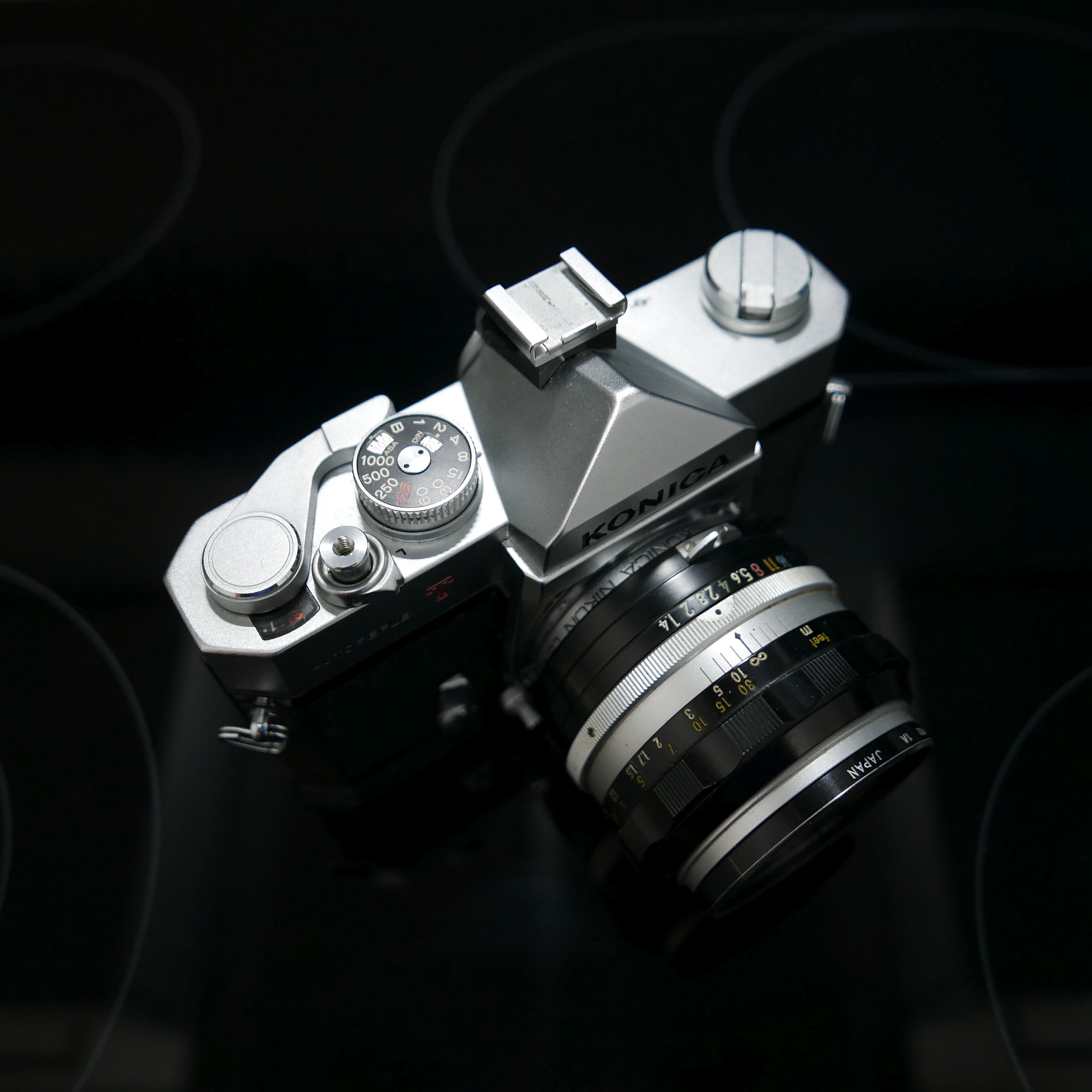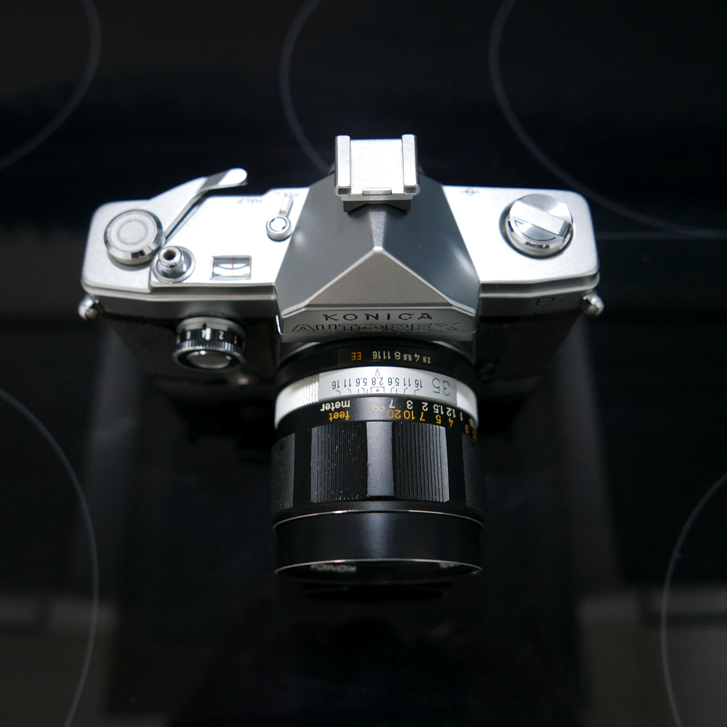 Mit dem neuen Konica-Bajonett stellten die Japaner 1965 die erste KB SLR Kamera vor, die neben Belichtungsautomatik (Electric Eye) auch die einzigartige Umschaltung auf das halbe Format bot. Zur Belichtungsregelung wurde ja bereits einiges gesagt. Nun zur Nomenklatur, die auch für die kostengünstigere Variante P ohne Belichtungsmesser gilt: