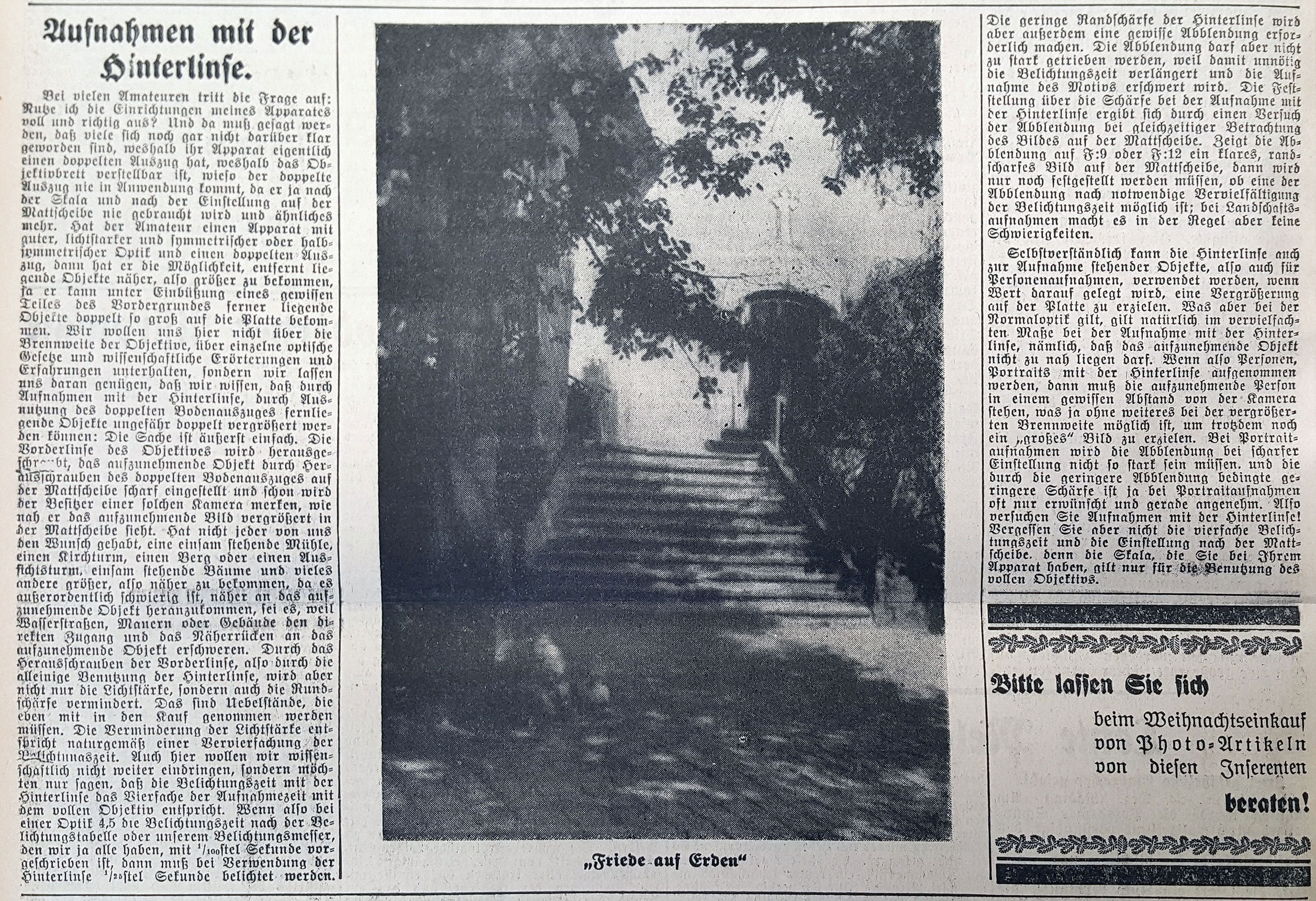 da das Fotografieren mit ausgeschraubter Frontlinse neulich im Forum mal wieder angesprochen wurde, möchte ich den beigefügten Artikel aus der Tagespresse (1930) zur Information hier einstellen. Ich habe selbst nur mit der Hinterlinse noch keine Aufnahmen gemacht, aber bei „Trockenübung“ zumindest festgestellt, das sich das Bild auf der Mattscheibe scharf stellen lässt.